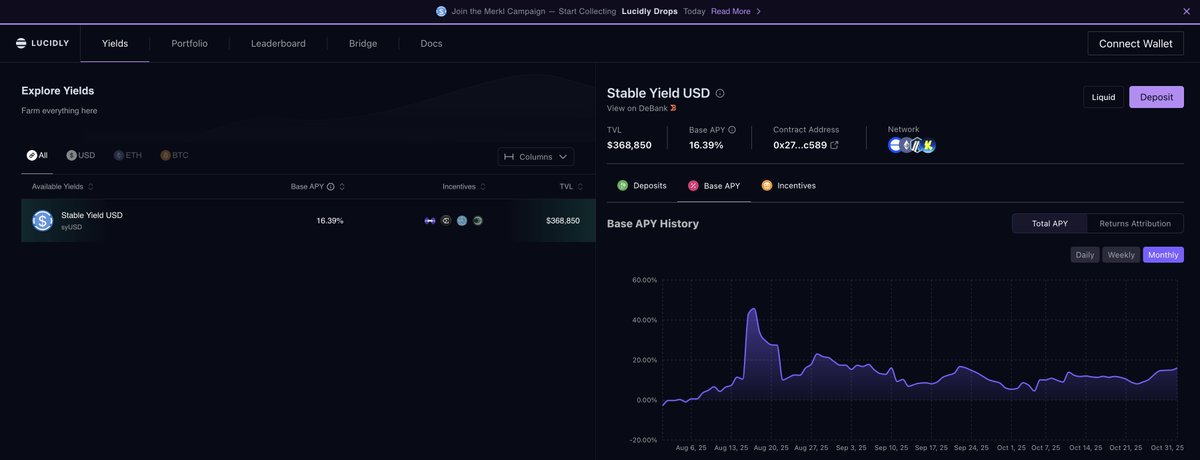 gm, we had a crazy product sprint over past week. A full fledged risk and transparency dashboard is in action on the lucidly app. syETH, syBTC and syHLP strategies are finally up and will be on the prod soon. (Delta neutral yield strategies built on uniswap and hyperliquid) tomorrow, we showcase the full stack at the @katana X @Hadronfc demo day, building for scale - building for defi at Lucidly Labs
