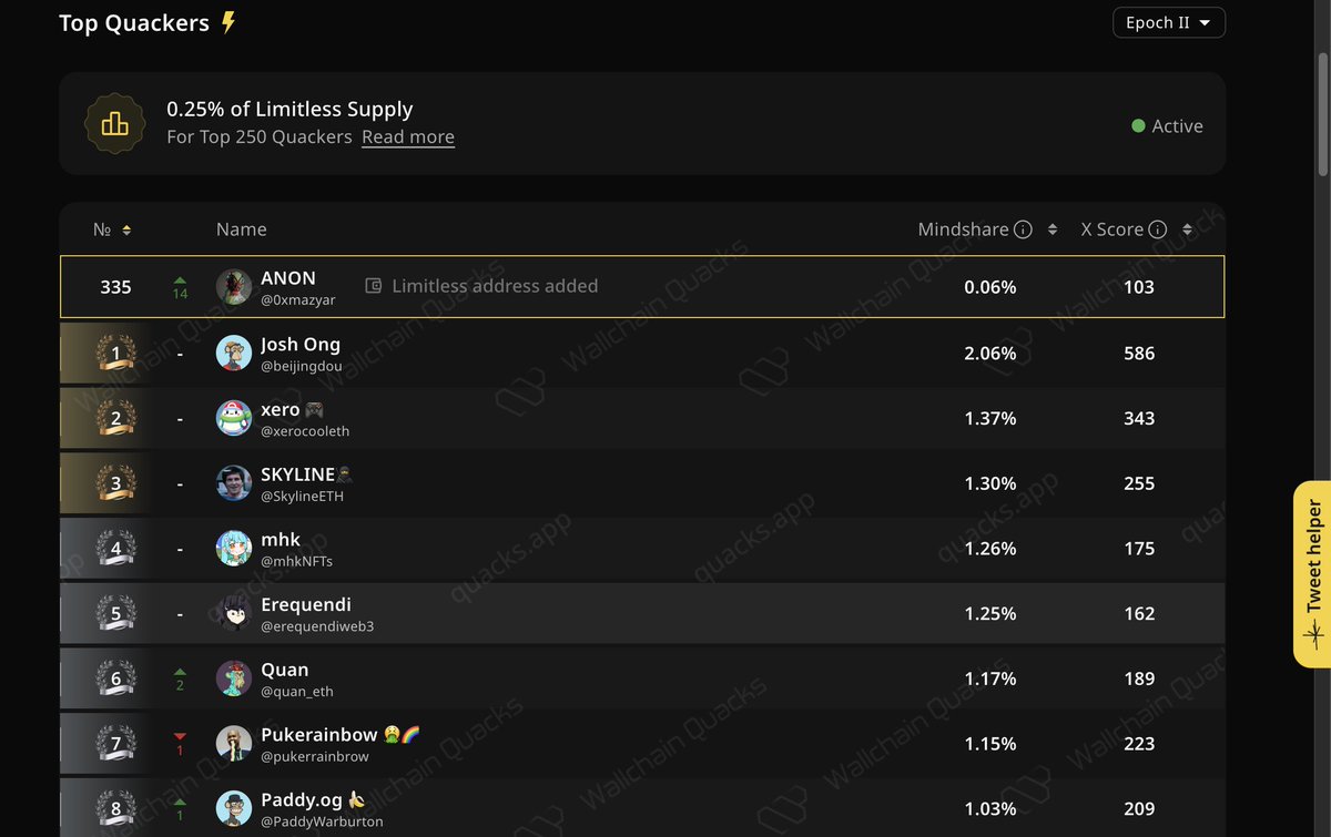 I think twitter score is very overweighted but in the same time i see many small accounts with low scores having high ranks in @trylimitless LB. I really got confused.