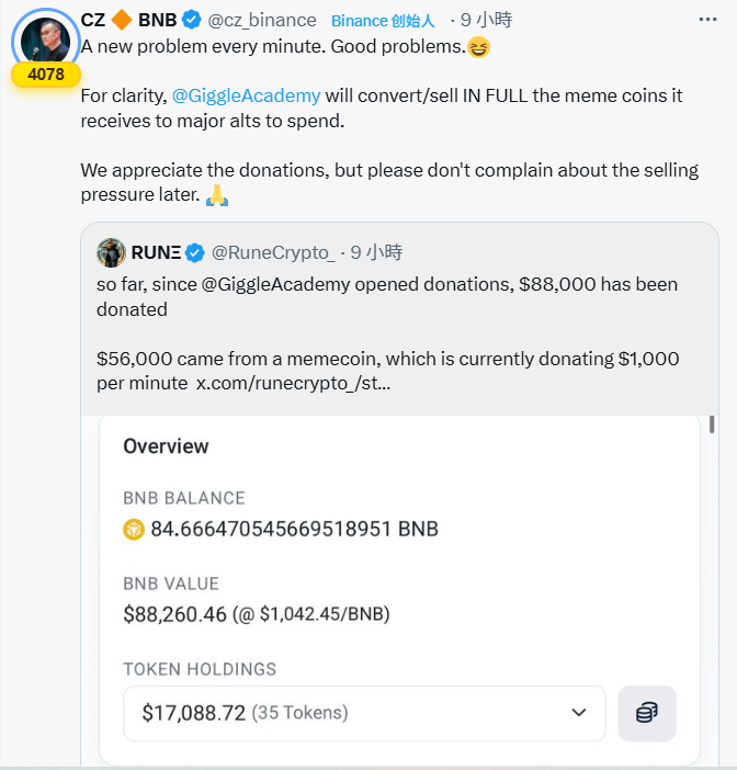 2025.9.22 #聚合群 链上视野 $Giggle 0x20d6015660b3fe52e6690a889b5C51F69902cE0e #Giggle@cz_binance 发起的免费教育项目,一个非盈利教育项目,需要靠捐赠来运转 它在 @BNBCHAIN 上交易,跟 #BNB 配对,捐赠是直接以 BNB 的形式流入(来自 PancakeSwap 的交易池手续费),而不是用 meme 代币本身。 代币本身设置了买卖税,把累积的资金捐赠给 Giggle钱包 ,Academy到目前为止,它已经为 @GiggleAcademy 筹集了 100万美金,占总捐赠额的95%。 这个叙事是个好事,我喜欢这个叙事。但是叙事再好也顶不住老鼠仓出货 有博主查到一些地址,底部买 $Ass 高位卖,再低位买 $Giggle 一路砸。 0xf6cf8a8556c5de3f3c74b596073222f30331ad3b