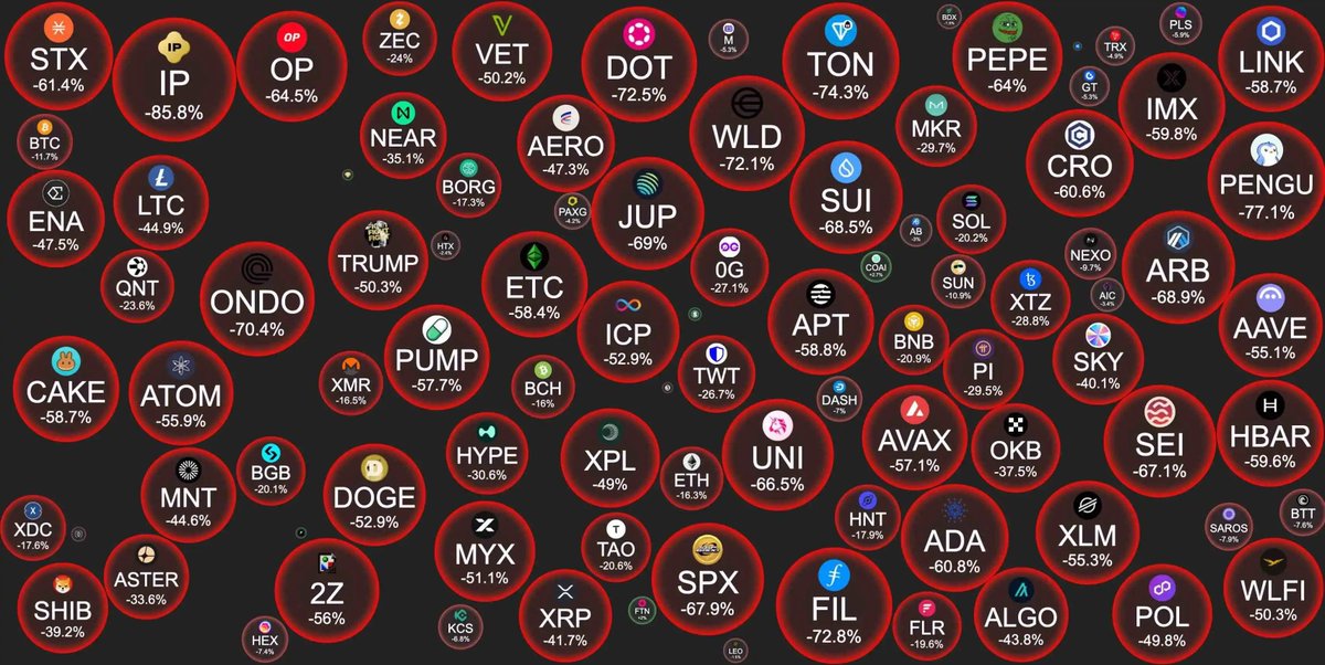 凌晨整个加密市场迎来了一波史诗级的系统性崩盘,比 3·12 和 5·19 都更惨。 比特币跌破 10 万美金,以太坊最低来到 3400 多, $SOL 、 $BNB 也几乎全线暴跌,跌幅都在 15%~20% 以上。更离谱的是,山寨币几乎出现了归零式暴跌——很多币一夜蒸发 90%、95%,就算现在反弹了,普遍也还在 -30% 左右。 过去 24 小时,全网清算量高达 96 亿美金,创下历史纪录。可以说这波谁玩山寨合约、哪怕只开一倍杠杆,都被清得干干净净。 导火索来自 #特朗普 昨晚发推,宣布将从 11 月 1 日起对中国加征 100% 关税。消息一出,美股期货和币圈同步跳水。凌晨 4 点左右,市场彻底崩盘,比特币直接插针,ETH 也在几分钟内暴跌 20%。 随后整个市场出现流动性真空,做市商集中保大币,小币无人接盘,山寨币板块直接断崖式下跌。 主流 DeFi 板块全面爆炸 $UNI 从 8 美金跌到 2 块,而整个 $ena 更夸张,从 0.5 直接跌到了0.13,而整个自由世界也是直接到了0.07,整个的跌幅都超过了80%,刚才 $ethfi 更是直接跌幅超过了 95% 0.085,同时整个 $aster 也是差到了0.9,可以说整个主流 DeFI 昨天全面的一个崩溃,刚才跌的少的都跌了60%,跌的多的直接跌了90% ENA 生态的稳定币 USE 一度脱锚到 0.65,整个系统出现连环清算。 币安方面更是雪上加霜 在暴跌过程中,很多人发现币安拔网线,合约账户无法转现货、理财转不出、下单出现 bug。市场下跌时几乎没人能抄底成功,系统卡得一塌糊涂。 MEME 板块更惨 狗狗币最低到 0.09,pepe一度跌超 70%,OD、TOT、atom 等直接归零。 $atom 市值从 10 亿美金瞬间蒸发成 0。 整个主流 MEME 平均跌幅 40% 以上,可以说全面清算。 新币方面也没幸免。 #币安人生、#帕鲁、 #4 、#客服小何 等项目市值全部腰斩,ok链项目更是惨烈,直接跌了 99.9%。 $OKB 也最低到 150。整个市场,真的是“只要不跌就是强者”。 这波能不能抄底? 其实昨晚也有少数人通过限价单抄到了 Solana 和 Wbeth 的短线反弹,但那是极少数。现在市场刚反弹一点点,不代表见底。按照过去 3·12 的经验,真正的底往往在第二天、第三天才会出来。 所以我的建议很简单: 如果你这波没赚到钱,别急着补仓; 如果你刚抄底反弹了,先锁利润; 现在最重要的是观望、冷静,别再玩杠杆。