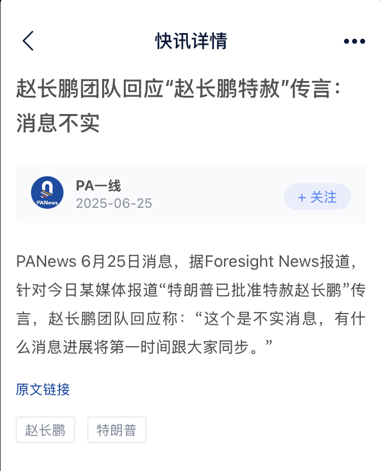 cz @cz_binance团队回应“赵长鹏特赦"传言:消息不实已辟谣! 如果cz 完成服刑、缴纳罚款并且恢复部分权利,重返币安@binance的管理层,对于整个生态来说都是利好。期待大表哥回归的那一天!相信这一天不会太晚到来!