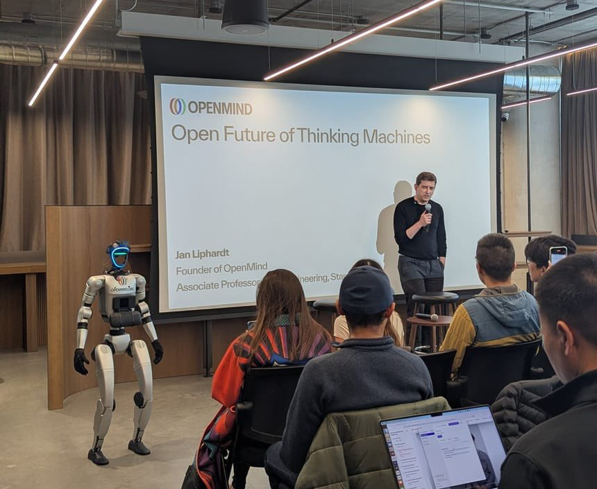 刚刷到一个机器人格斗的视频给我笑麻了,实在不行让机器人演喜剧把,哈哈哈哈嗝🤣,不过话又说回来也许屏幕里的那个看起来傻傻的机器人,未来真有可能靠 OpenMind 变聪明起来! @openmind_agi 是一个为“新一代智能机器人”打造的开源系统。不同于传统的封闭平台,它更像是一套可以自由拼接、不断进化的智能架构。整个系统由三个核心模块组成:视觉、运动、规划。每个模块都能独立升级或替换,让开发者像搭积木一样不断优化机器人的智能。 更让人惊讶的是,它的兼容性极强。无论是类人机器人、无人机,还是带轮子的自动移动设备,OpenMind 都能完美适配。开发者既可以在云端模拟调试,也能把同样的模型直接部署到真实机器人上,虚拟与现实之间的切换几乎无缝。 在感知层面,OpenMind 让机器人真正“感受世界”。它能同时处理来自摄像头、麦克风、LiDAR、温度和环境传感器的数据,让机器人不仅能“看到”和“听到”,还可以理解当下的场景和人类的行为。 而最令人期待的是它背后的 FABRIC 协议。通过这项技术,机器人之间可以互相共享经验和知识——一个机器人学会的新技能,其他机器人也能快速掌握。这就像一个分布式的“机器人大脑网络”,让智能在全球范围内协同成长。 OpenMind 基于 Python 开发,完全开源。任何人都可以参与构建和改进,这意味着机器人智能的未来将不再由少数巨头掌控,而由全球的开发者共同塑造。 或许在不久的将来,我们看到的不只是聪明的机器,而是一个真正互联、共同进化的智能世界。🤖