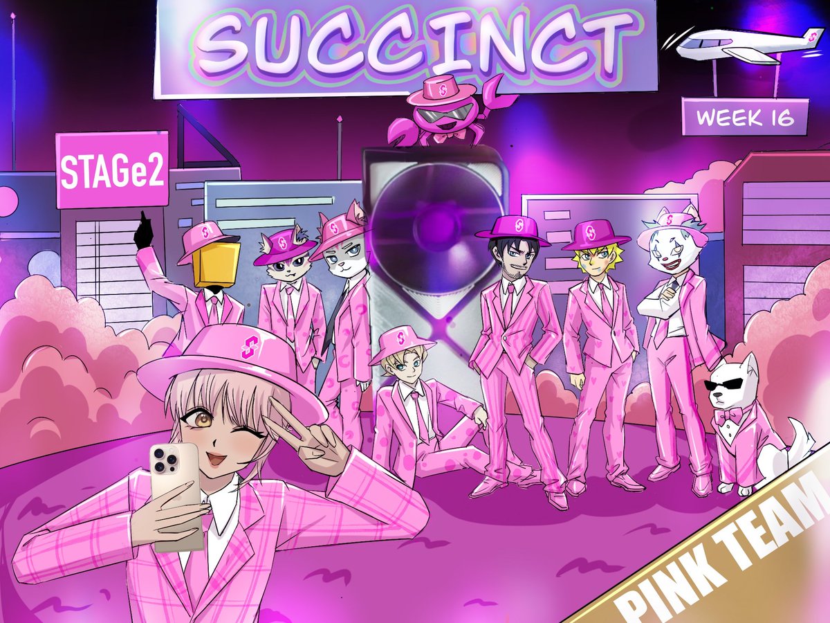 SUCCINCT WEEK 16 | PINK TEAM ON FIRE 🌸 Welcome to STAGE 2, where the Pink Team goes full power! 💥 We're not just dressed in style — our stats are on fire too 🔥 Check the leaderboard 👇 👑 Pink Team: 6,862 proofs 🔵 Blue Team: 6,280 proofs 🟢 Green Team: 2,299 proofs Yeah, we’re way ahead — BID luck is real ✨ 🎰 My own results: • 554 bids, 21 proofs hit — lucky runs with wild swings • 🏅 #7 in Pink Team • 🌍 #34 overall And guess what? I randomly picked 7 fellow Pink teammates and turned them into characters for this promo art! 👀 If you see yourself in the picture, come claim it! Or just RT and flex the Pink pride 💖 In @SuccinctLabs , luck is your greatest weapon — Your next bid might just shoot you straight to the top 🚀 📢 STAGE 2 allowlists are being handed out now! Not many have been given so far, so early birds really do get the worm. ⚡️ Join Succinct now — don’t wait until it’s too late and you're stuck watching others win! Testnet: testnet.succinct.xyz/prove/bids Discord: discord.gg/FVd79dny @0xCRASHOUT @lovecity0088