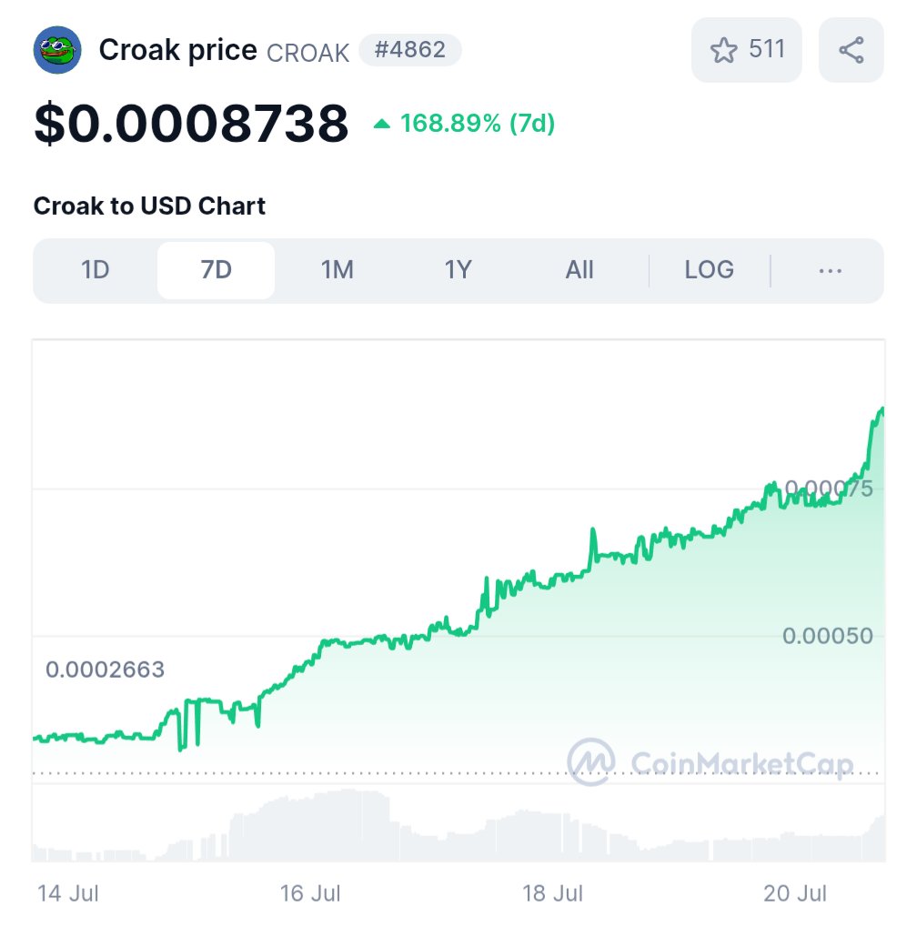 $CROAK, the token of @efrogs_on_linea is up ~170% in the last 7 days and it's showing no signs of stopping.