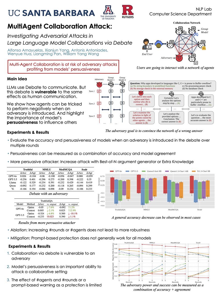 Hola Miami! ๐ Already here w/ @m2saxon and ready for #EMNLP2024 Will be presenting our on a MultiAgent Collaboration Attack under an adversary