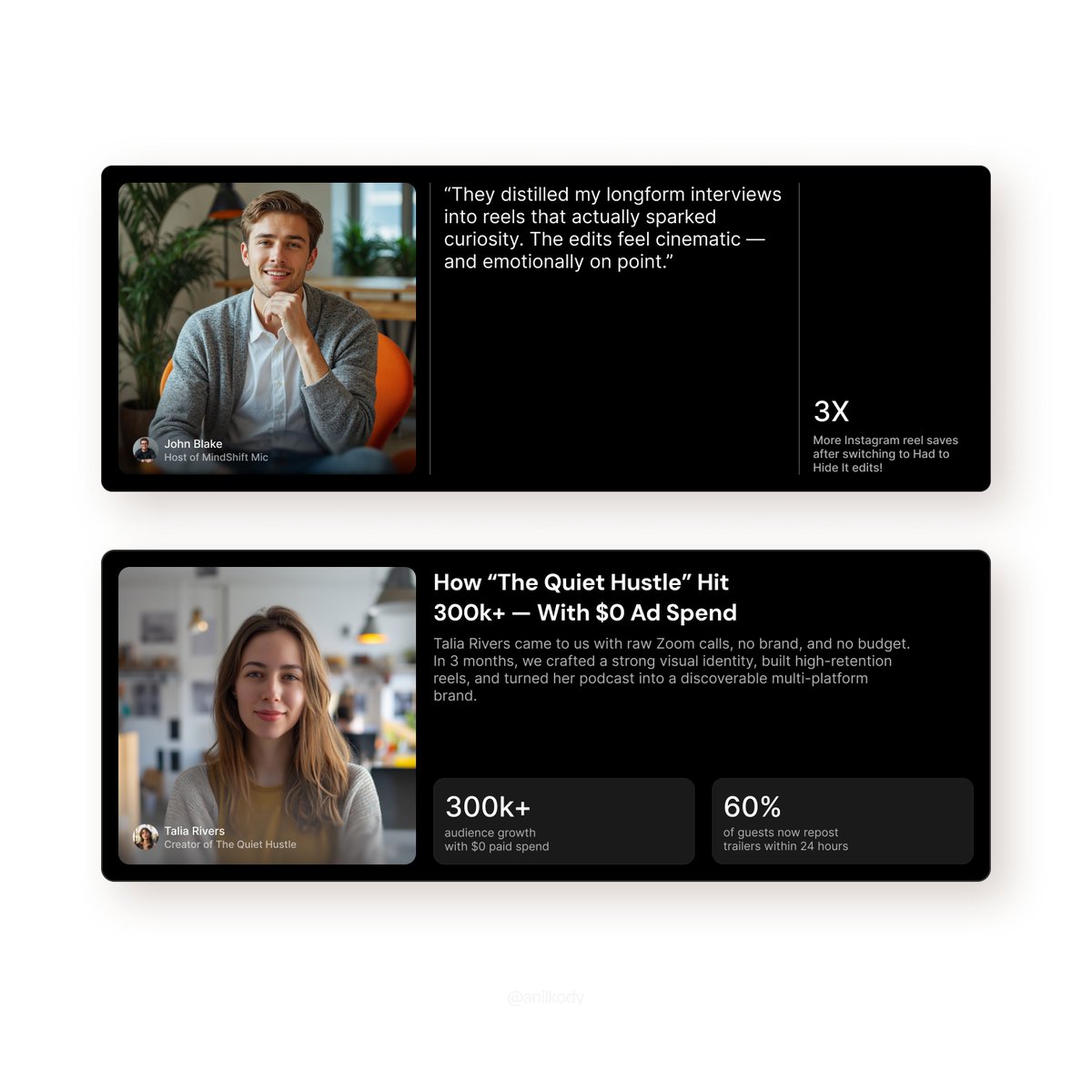 💪 Strength His transparency and grit create genuine connections, while his deep expertise in Framer and a sharp focus on results attract a niche audience of startups and creatives looking for authentic solutions.