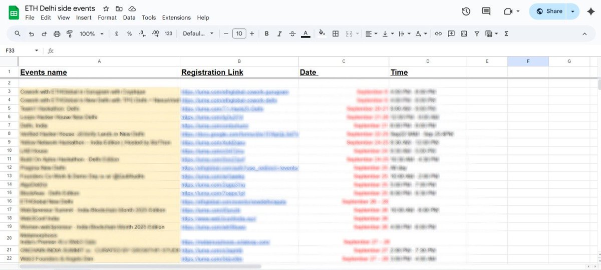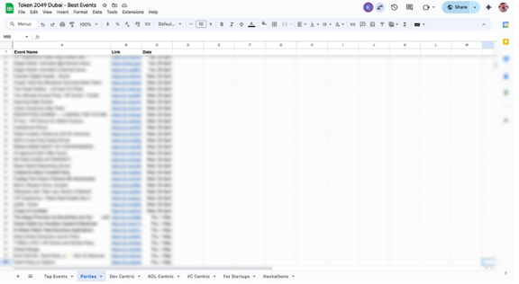 So I filtered the list with the top events, VC-centric, KOL-centric, Parties, etc.