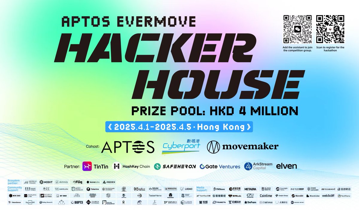 💧Supported by DianDi Finance 🔥Jointly hosted by Movemarker, Aptos, and Cyberport, the APTOS EVERMOVE HackerHouse is now recruiting! 📅From April 1st to 5th, five days of extreme development, top - notch mentors, VC investment opportunities, and a HK$4 million prize pool waiting for you to win! 🚨Register now→ lu.ma/c21497xh #点滴财经 #web3 #btc #eth #sol #DePin #AI #DianDiFinance #Space #DeFi
