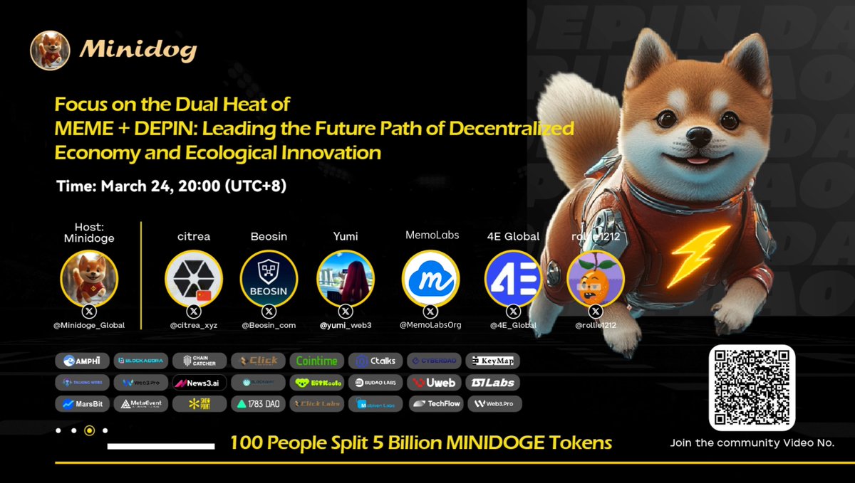 🔥Attention! Focus on the Dual Heat of MEME + DEPIN, Leading the Future of Decentralized Economy and Ecological Innovation! Decentralized Finance meets Minidoge! #Minidoge ⏰Date: March 24th, 8 PM UTC+8 🎙Hosts: @Minidoge_Global 👥Guest Lineup: @CitreaChina @Beosin_com @yumi_web3 @MemoLabsOrg @rollie1212 @4E_Global Space:x.com/i/spaces/1OdKr… #Web3 #Crypto #Innovation #minidog #memecoins