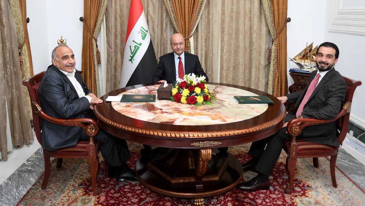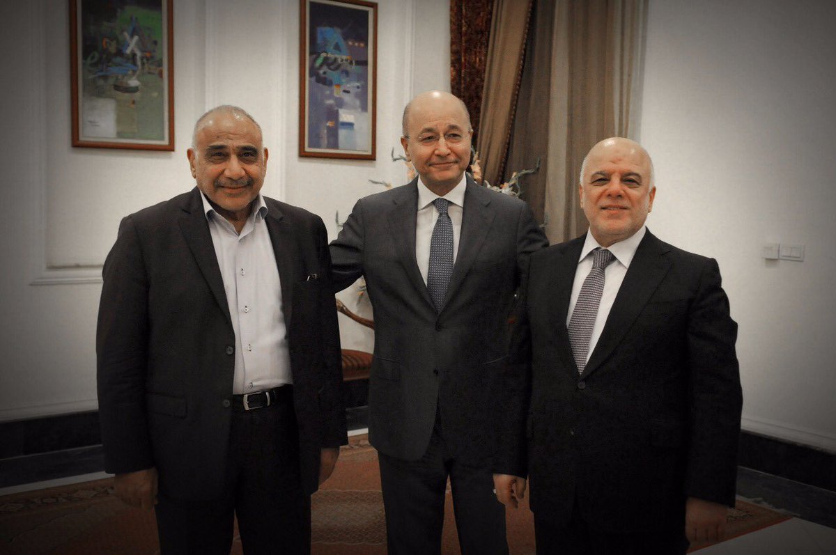 اجتماعنا اليوم مع السادة رئيس الوزراء @AdilAbdAlMahdi ورئيس مجلس النواب @AlHaLbooosii :ضرورة تعزيز العمل المشترك وتجاوز الاختناق السياسي والإبتعاد عن التصعيد الإعلامي بين الفرقاء السياسيين واعتماد المؤسسات الديمقراطية حفاظاً على وحدة الصف الوطني والانطلاق نحو خدمة المواطنين
