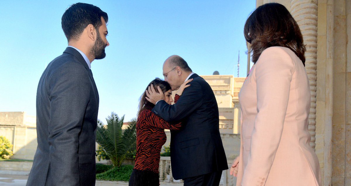 Just spoke to @NadiaMuradBasee to offer congratulations on wining Nobel Peace Prize; acknowledgment of tragic plight of Ezidis, recognition for her courage in defending human rights of victims of terror & sexual violence— honor for all Iraqis who fought terrorism & bigotry