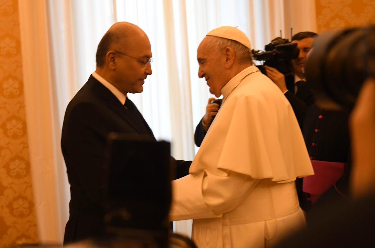 استقبلنا الصديق @EmmanuelMacron في بغداد. العراق وفرنسا ينطلقان من عمق التاريخ وسحر الحضارة و تطلع مشترك الى تعاون اقليمي ودولي في مواجهة التطرف والارهاب. اکدنا علی اهمية تمتین علاقاتنا من أجل بناء شراكة استراتيجيّة ترتكز الى دعم تنمية العراق واحترام سيادته واستقرار المنطقة.