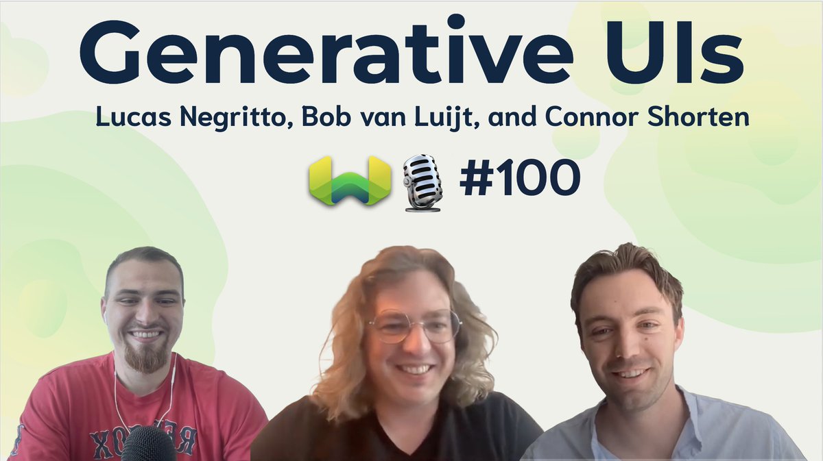 I am SUPER EXCITED to publish the 100th episode of the Weaviate Podcast (💯🎙️🎉) with Lucas Negritto (@lucasteez) and Bob van Luijt (@bobvanluijt) on Generative UIs! 🖼️♻️ This is an amazing example of AI-native applications and the new generation of software! Rather than producing front-end code, what if the generative model just dynamically renders the application? This reminded me heavily of the GameGAN research from NVIDIA, super cool to see what Lucas is building with Odapt and how this idea is advancing! I thought the discussion of "Native Multimodality" was really fascinating! 🔊👀 This was such a fun conversation! I hope you find the podcast interesting and useful! YouTube: youtube.com/watch?v=x1i9pG…