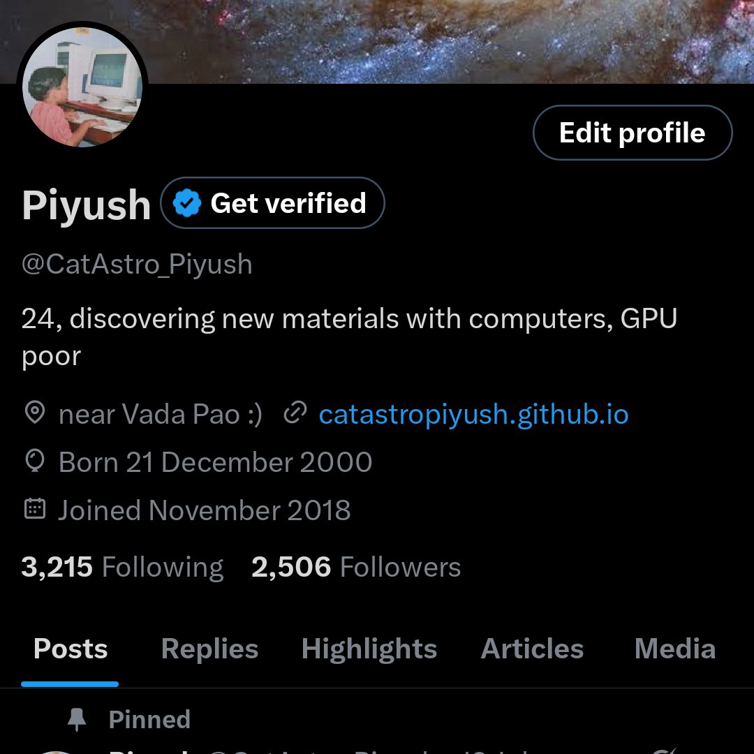 Piyush is a passionate explorer of new materials through computational methods, balancing curiosity and hard work despite tech limitations. His tweets reveal a deep love for learning, a reflective nature, and a playful connection to his academic journey. Constantly engaging with scientific content and sharing insights, he's both a knowledge seeker and an enthusiastic communicator.