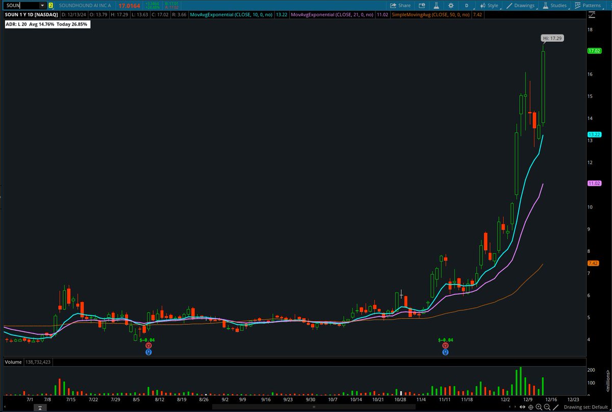 $SOUN @Qullamaggie Lessons are timeless. Nearly every big winner follows the principles that he preached on stream. If you sell stuff too early in a hot market then you retire 10 years later. You are never smarter than the 10/20-day moving average. Big Move / Pull-Back / Consolidation / Breakout ~ How Stocks Have Moved Over the Past 100s of Years High ADR = Gold Stocks that surf the 10 & 20 day are the best and what you should focus on The stocks that double quick are the ones that make you rich and tend to double again Insane moves happen in good markets Good breakouts go straight up Trade stocks that are in the top 1-3% momentum movers in the past month