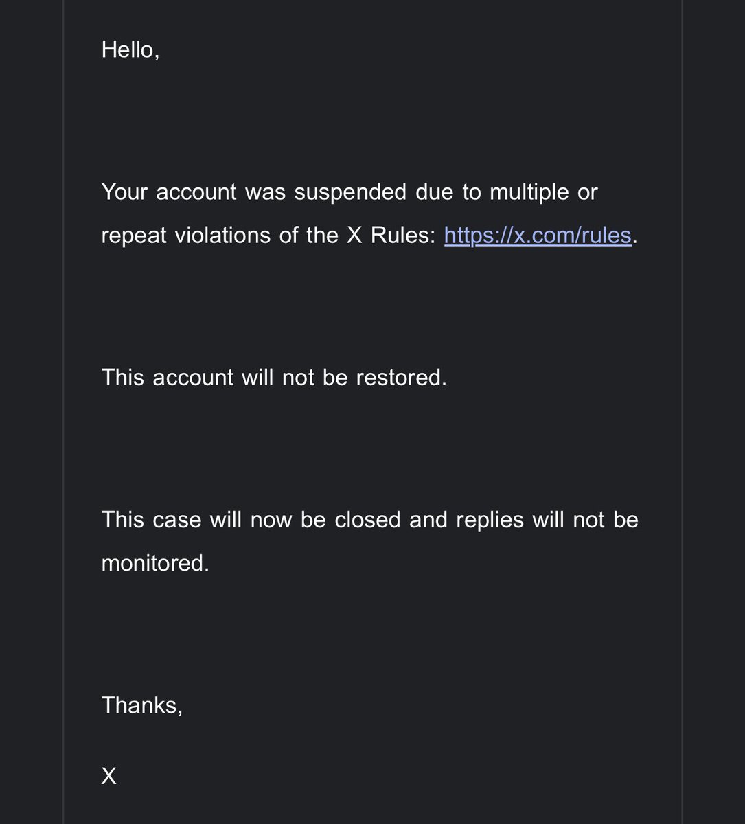 My main account @DeniTechh got suspended after “careful review”, you mean automated and random?