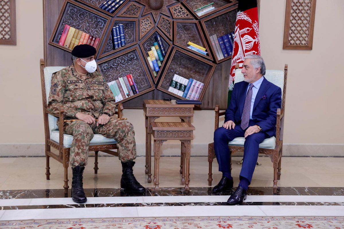 2/2 Gen. Bajwa expressed Pakistan's support for our efforts & earliest possible start of I/A talks. I told him that we are ready to engage with the Taliban on our common issues to end conflict & live together in peace. I reiterated on Pakistan's constructive role in this regard.