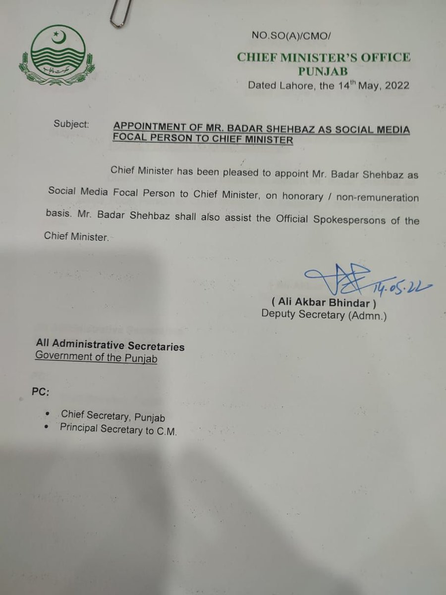 Official Account of Govt of Punjab, Pakistan.
