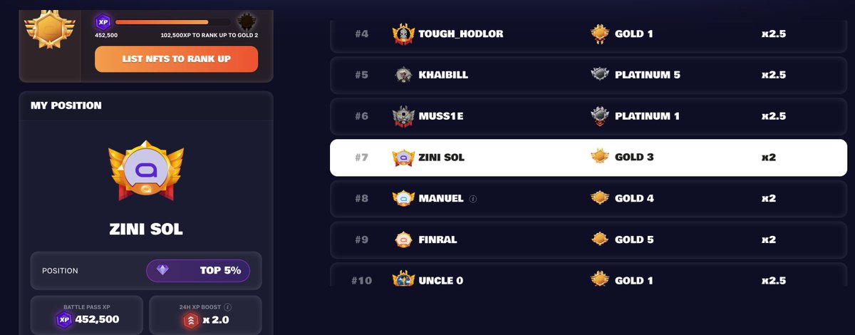 Currently sitting at Gold 3 with 452,000+ XP and still climbing