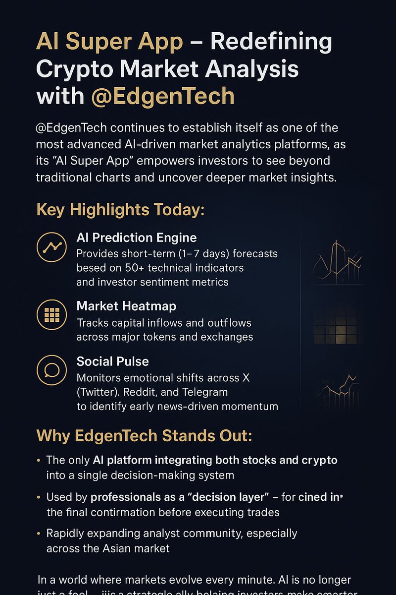 AI Super App – Redefining Crypto Market Analysis with @EdgenTech@EdgenTech continues to establish itself as one of the most advanced AI-driven market analytics platforms, as its “AI Super App” empowers investors to see beyond traditional charts and uncover deeper market insights.