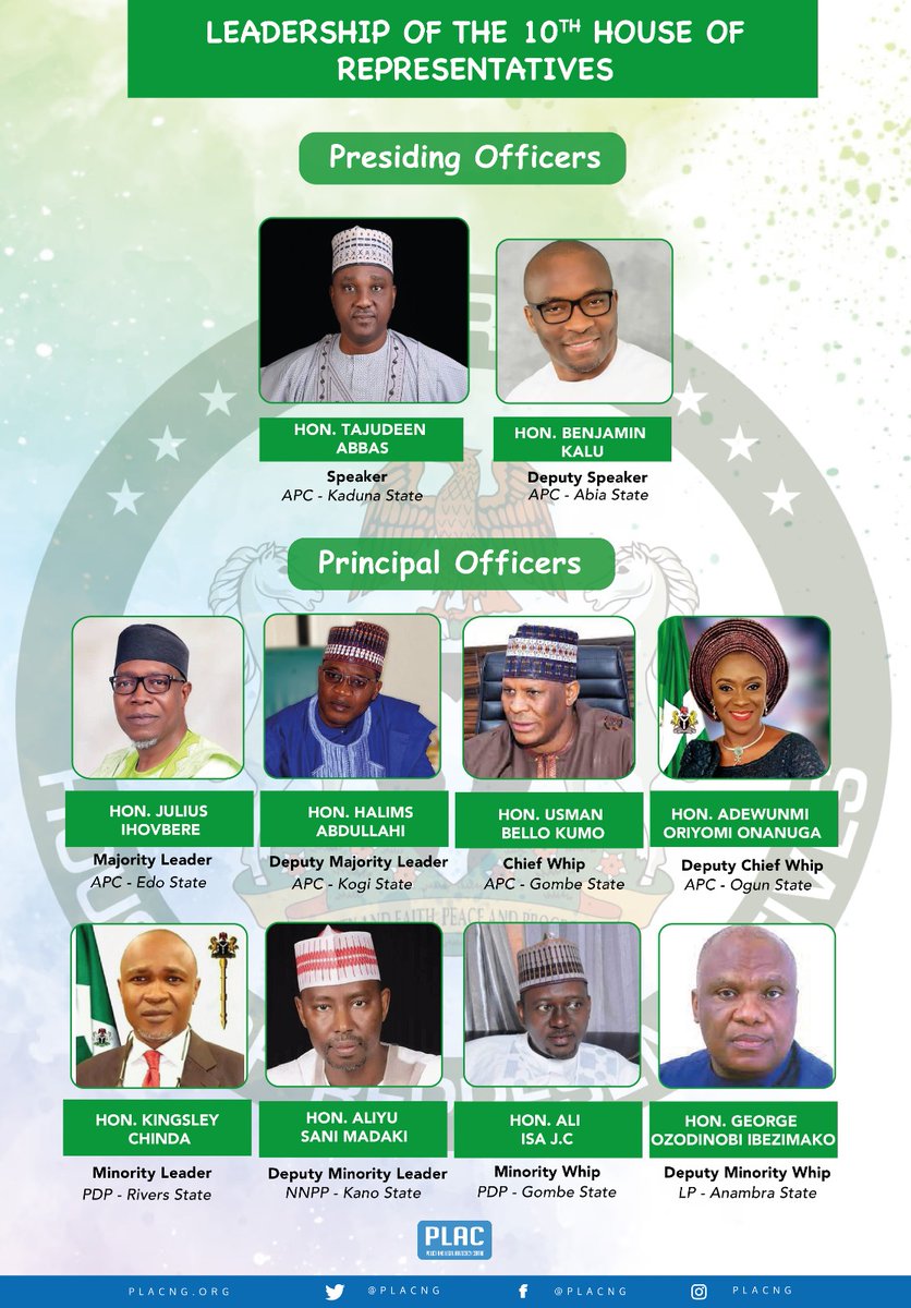 The House Speaker, Rep. @femigbaja, the Chief Whip, Rep. Tahir Monguno, the Deputy Chief Whip, Rep. Nkeiruka Onyejeocha and the Chairman of the House Committee on Land Transport, Rep. Tajudeen Abbass are among the top sponsors of bills in the last one year of the 9th Assembly.