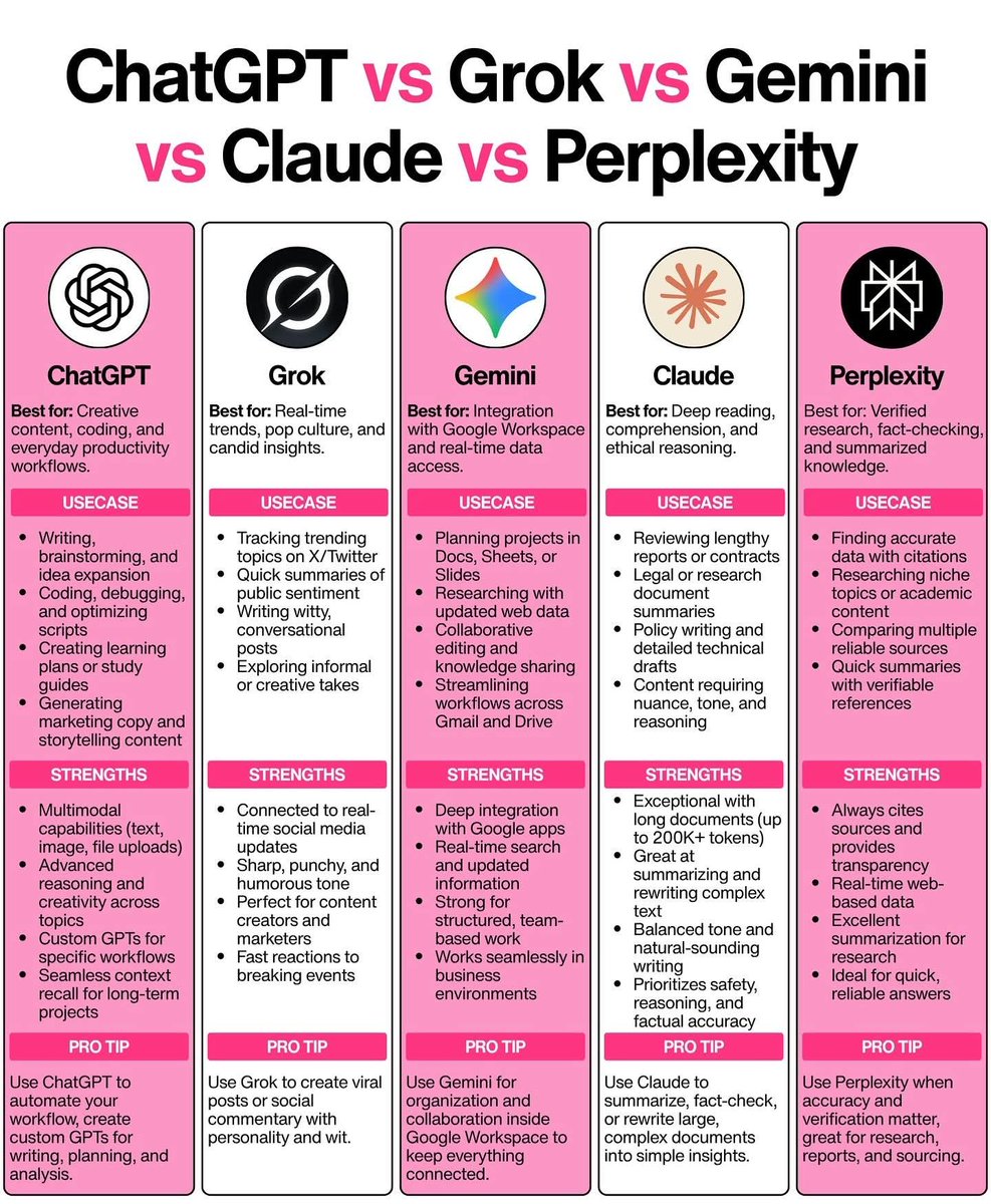 Still only using ChatGPT? Top 5 AI Tools You Should Be Using in 2025 🔸 Claude.ai (@AnthropicAI) Your go-to AI for rewriting and refining copy with human-like fluency. Perfect for marketers, writers, and content creators seeking smart edits. 🔸 Leonardo.ai (@LeonardoAi_) Generate stunning AI-powered art in seconds. Ideal for creators, designers, and storytellers looking to stand out. 🔸 Elevenlabs.io (@elevenlabsio) Clone realistic voices using cutting-edge AI technology. Used for dubbing, narration, and voice-over with lifelike results. 🔸 Perplexity.ai (@perplexity_ai) Ask questions, get smart, concise answers instantly. Your intelligent research assistant with real-time information. 🔸 Looka.com (@lookadesign) Design sleek logos with ease—no design experience needed. Build your brand visually with this powerful AI logo maker. 📍Follow for more AI tools & tips: @I_Muhammadali44