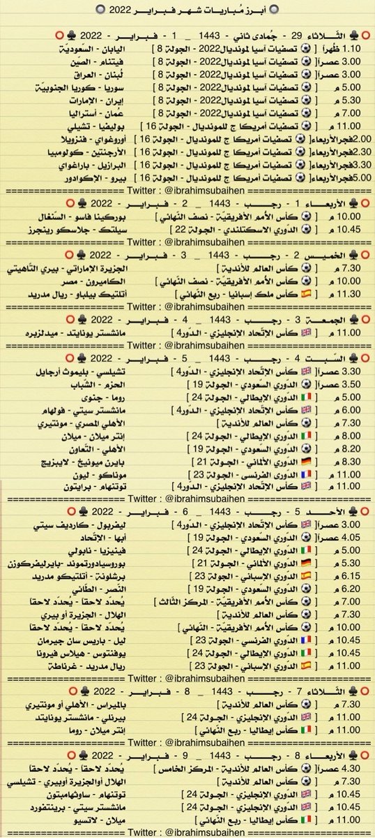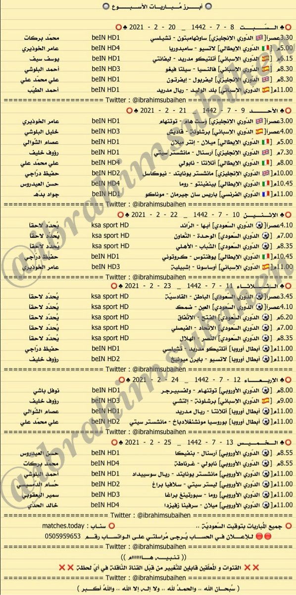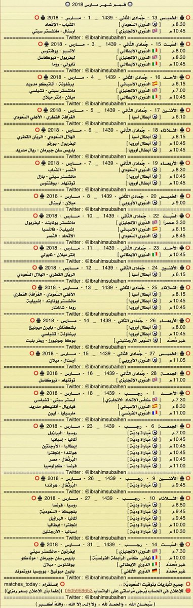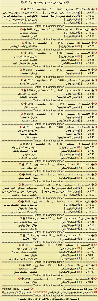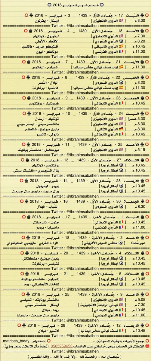 أول حساب متخصص في عرض المباريات المنقولة مع المعلقين التيليجرام t.me/matches_today2 حسابي الشخصي @12_iss زبدة الحساب في المفضلة