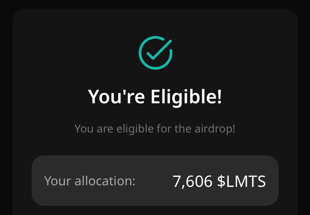 yesterday i checked and saw i was eligible for 7,606 $LMTS… crazy.