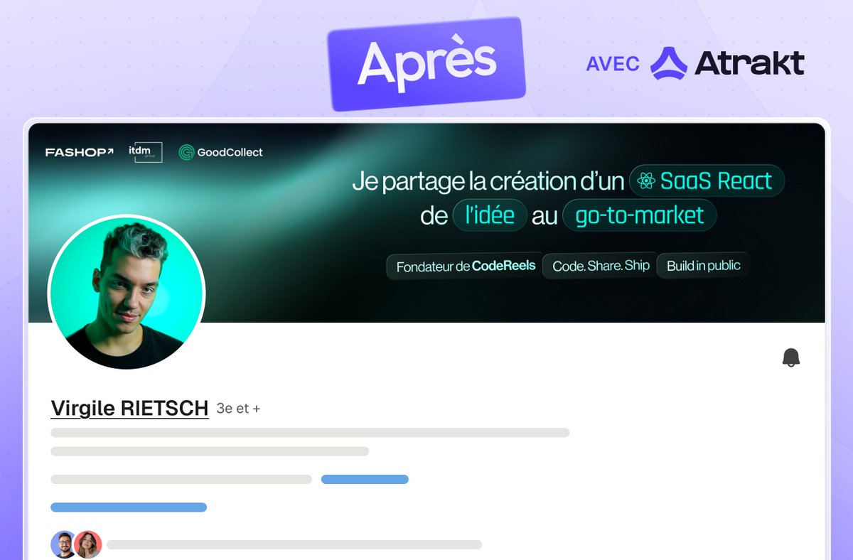 Get live statistics and analysis of Johan - Atrakt Founder 's profile on X / Twitter Johan - Atrakt Founder @JohnLrDev We redesign your online presence (LinkedIn, Youtube, X...) to attract clients and build trust. Delivered in less than 72h. 70+ happy clients.