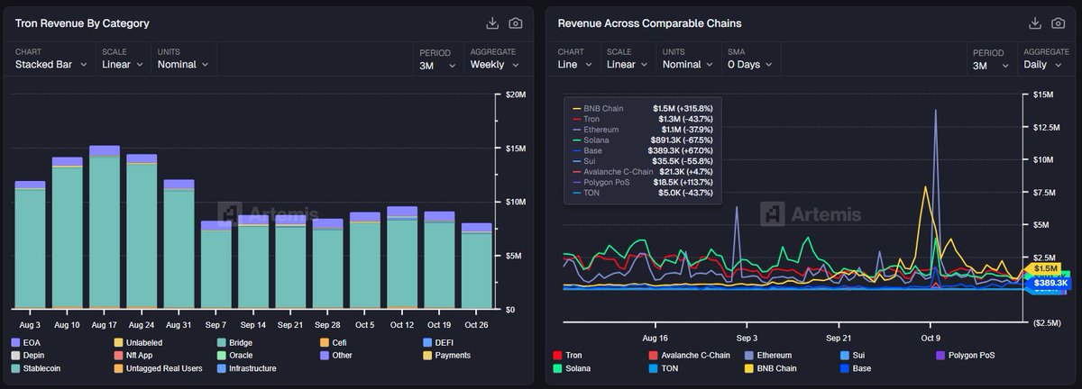 🔴TRON -> The Unrivaled King of Real-World Stablecoins! @zama_fhe mãi cũng chán nay sang @trondao một hôm nhé ae kkk @trondao không chỉ dẫn đầu – mà định nghĩa lại stablecoin toàn cầu. $78.4 tỷ USDT lưu hành (+4.8%), xếp thứ 2 thế giới, bỏ xa Solana, Base, Sui. $13B chuyển mỗi ngày dù thị trường giảm nhiệt, vẫn gấp đôi Solana, gấp 4 lần Base. Doanh thu $1.1 triệu/ngày – top 2 toàn ngành, chỉ sau BNB Chain. Stablecoin, DeFi, Payments dòng tiền từ hàng triệu người dùng thực, không phải bot hay farm. $USDT chiếm 100% stablecoin trên TRON, với giá trị giao dịch trung bình cao nhất, phục vụ Very High Activity Users những người dùng blockchain như dùng ngân hàng. TRON không phải L1. TRON là hạ tầng tài chính của thế giới mới nổi.Phí $0.0003 | Tốc độ 3 giây | 2.4M DAUs | 8.6M tx/ngày Khi cả thế giới cần tiền ổn định, nhanh, rẻ, không biên giới họ không chọn Ethereum. Họ chọn TRON. @trondao @TronDao_VIE @justinsuntron #tronglobalfriends