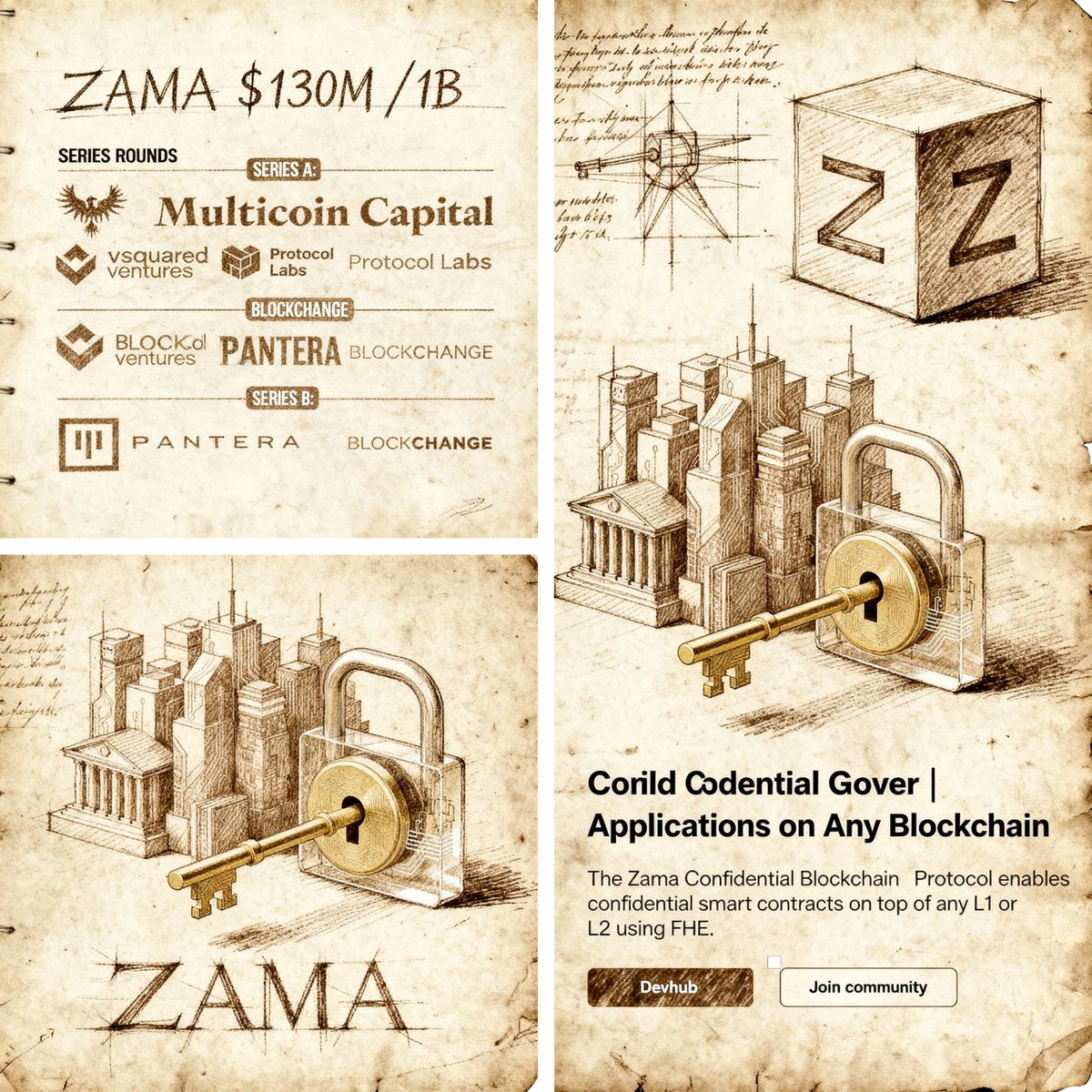 gZama fam ๐จโฌ @zama_fhe is an open source cryptography company advancing Fully Homomorphic Encryption (FHE), enabling computations on encrypted data without decryption. Its tools (TFHE rs, Concrete, Concrete ML, FHEVM) make FHE practical for blockchain, AI, and privacy focused applications. Fully Homomorphic EncryptionFHE allows processing encrypted data while keeping it secure, a concept realized in 2009 by Craig Gentry. Zamaโs optimizations, like TFHE rs, make it up to 100 times faster, enabling real world use in privacy sensitive systems. Privacy Preserving Compute Zamaโs FHEVM enables encrypted smart contracts on EVM compatible blockchains, processing data without exposing plaintext. Use cases like secure voting or health data analysis keep sensitive information hidden from nodes and validators. Confidential Transactions FHEVM powers private blockchain transactions, hiding amounts in DeFi, trades, or stablecoin minting. This prevents front running and ensures verifiability, maintaining blockchain composability and security. Encrypted AIConcrete ML integrates FHE with AI frameworks, enabling models to train and infer on encrypted data. Applications like private genetic analysis or symptom prediction protect user privacy, with a projected $20 billion market by 2030. Zero Knowledge and FHE SynergyFHEโs arbitrary computations complement zero knowledge proofsโ efficient verification. Together, they enable private execution and proof of correctness for confidential governance, identity systems, or cross chain privacy, surpassing ZK only solutions. Zama, a $1 billion+ FHE unicorn after a $57 million Series B in 2025, drives adoption through testnets and โฌ500000+ in open source bounties. #ZamaCreatorProgram