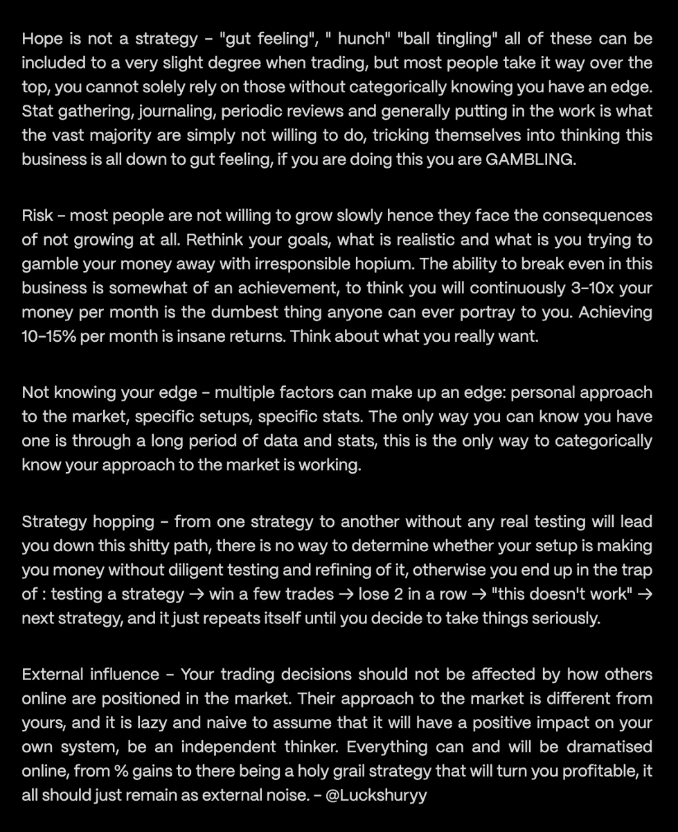 {"data":{"__meta":{"device":false,"path":"/creators/Luckshuryy"},"/creators/Luckshuryy":{"data":{"user":{"created_at":"Mon Dec 06 23:42:13 +0000 2021","default_profile":true,"default_profile_image":false,"description":"lead @ExochartsC | building @EntropiaTrading | price action trader | order flow, statistics & transparency","entities":{"description":{"urls":[]},"url":{"urls":[{"display_url":"luckshury.trade","expanded_url":"https://www.luckshury.trade/","url":"https://t.co/eyYTbARGup","indices":[0,23]}]}},"fast_followers_count":0,"favourites_count":2730,"followers_count":40744,"friends_count":104,"has_custom_timelines":true,"is_translator":false,"listed_count":738,"location":"free exocharts course + cmm →","media_count":2794,"name":"Luckshury","normal_followers_count":40744,"pinned_tweet_ids_str":["1766537256938987915"],"possibly_sensitive":false,"profile_banner_url":"https://pbs.twimg.com/profile_banners/1468002736260235267/1691421459","profile_image_url_https":"https://pbs.twimg.com/profile_images/1688570098489896962/ehV5yAuF_normal.jpg","profile_interstitial_type":"","screen_name":"Luckshuryy","statuses_count":5092,"translator_type":"none","url":"https://t.co/eyYTbARGup","verified":false,"withheld_in_countries":[],"id":"1468002736260235267"},"details":{"type":"The Thought Leader","description":"Luckshury is a price action trading guru who combines transparency with detailed analysis, making complex trading concepts accessible to aspiring traders. With a wealth of knowledge shared through insightful threads, they engage and educate their growing audience on the intricacies of order flow and liquidity. As the lead at ExochartsC and builder of EntropiaTrading, Luckshury is paving the way for a new generation of informed traders.","purpose":"To empower individuals to achieve financial independence through education in trading strategies, emphasizing transparency and clarity.","beliefs":"Luckshury values honesty and transparency in trading, believing that informed traders make better decisions. They hold the belief that anyone can succeed with the right education and resources.","facts":"Luckshury has tweeted over 5,000 times, showcasing their commitment to engaging and educating their audience continually.","strength":"An exceptional ability to break down complex trading concepts into digestible, engaging threads that resonate with followers.","weakness":"May occasionally overwhelm followers with technical details, risking alienation of beginner traders who are still learning the ropes.","roast":"Luckshury's tweets on trading might just be the only time you'll see someone get excited about order flow and liquidity—seriously, you've got the enthusiasm of a kid in a candy store who just discovered a new favorite sour candy!","win":"Successfully creating a significant following by consistently providing valuable content that not only informs but also engages the trading community.","recommendation":"To grow your audience on X, consider engaging more with your followers. Host Q&A sessions or live trading discussions to foster a sense of community and provide real-time insights."},"tweets":[{"bookmarked":false,"display_text_range":[0,30],"entities":{"hashtags":[],"media":[{"display_url":"pic.x.com/A45rrL1v7R","expanded_url":"https://x.com/Luckshuryy/status/1852321431964807644/photo/1","id_str":"1852321428240252928","indices":[31,54],"media_key":"3_1852321428240252928","media_url_https":"https://pbs.twimg.com/media/GbTEhmQawAAyC56.png","type":"photo","url":"https://t.co/A45rrL1v7R","ext_media_availability":{"status":"Available"},"features":{"large":{"faces":[]},"medium":{"faces":[]},"small":{"faces":[]},"orig":{"faces":[]}},"sizes":{"large":{"h":1228,"w":1052,"resize":"fit"},"medium":{"h":1200,"w":1028,"resize":"fit"},"small":{"h":680,"w":583,"resize":"fit"},"thumb":{"h":150,"w":150,"resize":"crop"}},"original_info":{"height":1228,"width":1052,"focus_rects":[{"x":0,"y":0,"w":1052,"h":589},{"x":0,"y":0,"w":1052,"h":1052},{"x":0,"y":0,"w":1052,"h":1199},{"x":0,"y":0,"w":614,"h":1228},{"x":0,"y":0,"w":1052,"h":1228}]},"media_results":{"result":{"media_key":"3_1852321428240252928"}}}],"symbols":[],"timestamps":[],"urls":[],"user_mentions":[]},"extended_entities":{"media":[{"display_url":"pic.x.com/A45rrL1v7R","expanded_url":"https://x.com/Luckshuryy/status/1852321431964807644/photo/1","id_str":"1852321428240252928","indices":[31,54],"media_key":"3_1852321428240252928","media_url_https":"https://pbs.twimg.com/media/GbTEhmQawAAyC56.png","type":"photo","url":"https://t.co/A45rrL1v7R","ext_media_availability":{"status":"Available"},"features":{"large":{"faces":[]},"medium":{"faces":[]},"small":{"faces":[]},"orig":{"faces":[]}},"sizes":{"large":{"h":1228,"w":1052,"resize":"fit"},"medium":{"h":1200,"w":1028,"resize":"fit"},"small":{"h":680,"w":583,"resize":"fit"},"thumb":{"h":150,"w":150,"resize":"crop"}},"original_info":{"height":1228,"width":1052,"focus_rects":[{"x":0,"y":0,"w":1052,"h":589},{"x":0,"y":0,"w":1052,"h":1052},{"x":0,"y":0,"w":1052,"h":1199},{"x":0,"y":0,"w":614,"h":1228},{"x":0,"y":0,"w":1052,"h":1228}]},"media_results":{"result":{"media_key":"3_1852321428240252928"}}}]},"favorited":false,"lang":"en","possibly_sensitive":false,"possibly_sensitive_editable":true,"retweeted":false,"fact_check":null,"id":"1852321431964807644","view_count":293043,"bookmark_count":2265,"created_at":1730462818000,"favorite_count":4403,"quote_count":38,"reply_count":57,"retweet_count":676,"user_id_str":"1468002736260235267","conversation_id_str":"1852321431964807644","full_text":"Trading will change your life: https://t.co/A45rrL1v7R","in_reply_to_user_id_str":null,"in_reply_to_status_id_str":null,"is_quote_status":0,"is_ai":null},{"bookmarked":false,"display_text_range":[0,39],"entities":{"hashtags":[],"media":[{"display_url":"pic.x.com/mocydiHmZG","expanded_url":"https://x.com/Luckshuryy/status/1875184256261210202/photo/1","id_str":"1875184253019078656","indices":[40,63],"media_key":"3_1875184253019078656