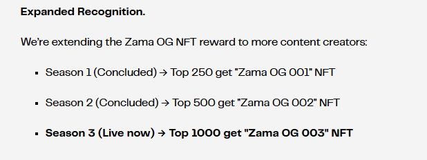 🔹Top 1000: “Zama OG NFT 003” với quyền truy cập alpha và những lợi thế chưa được tiết lộ.