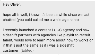 Reposted @drewlevinnOne SideShift customer doing $1M+ MRR with $0 ad spend just hired 153 creators in 7 daysāall from SideShift.