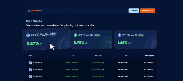 Superkat just launched on @katana and it’s something every DeFi user wants. Instead of constantly hunting for vaults, comparing interest rates, and manually transferring assets, Superkat does it all for you. It automatically allocates your deposits to top lending vaults on Katana via MorphoLabs, always achieving the optimal APY in real-time. Just deposit once, Superkat handles the rest smart, automatic, and efficient. A big step forward for “yield automation” in DeFi.