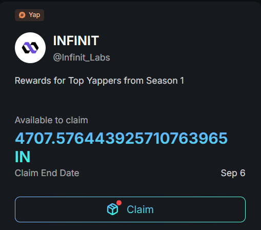 Giveaway 50$ cho 5 AE mỗi AE 10$, điều kiện: 1. Like và retweet tweet này. 2. Comment địa chỉ ví EVM xuống bên dưới. Chọn 5 người trúng vào 10/7 12h trưa VN. Thanks @Infinit_Labs Mà vẫn chưa claim được, lỗi chain BSC rồi, Kaito không có chain này, haiz thật, làm gì đó đi ông Kaito. Chiến season 2 thôi AE, vẫn pool 1M $IN nhé. Mấy ngày cuối bị pháp sư Trung Hoa đá ra khỏi top 100 30D ko là nhận được nhiều gấp đôi cái này.