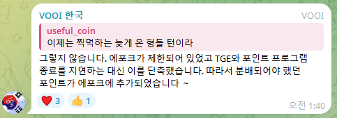 2. Vooi 한국 커뮤니티 외국인 관리자(번역기로 진짜 열심히함) 이야기에 따르면, Epoch별 부스팅을 통해 TGE를 단축중