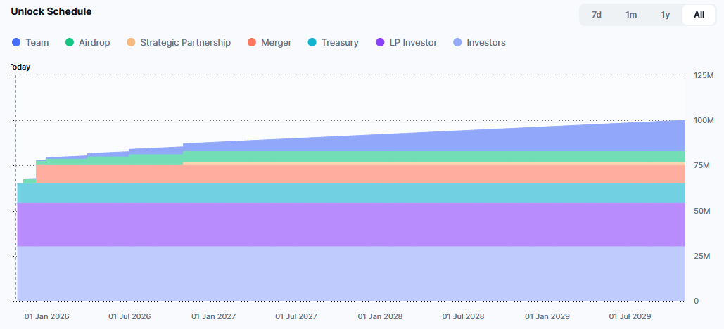 특이한 점은 세일에 참여하는 LP에 Total Supply의 35%가 포함되는데, 24%가 초기 투자자 물량 + 11% 트레저리 물량으로 구성됩니다.