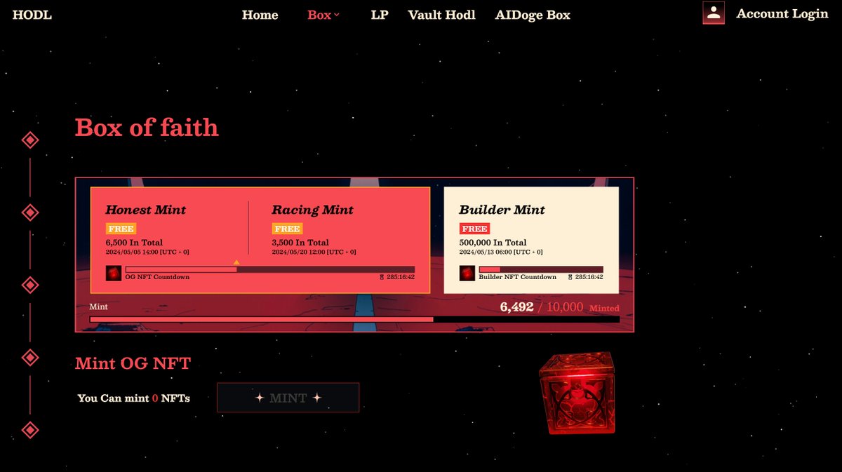上一次杰尼君抽的HODL的OG box,中奖用户去MINT后可以开出的HODL代币,最高应该是可以卖到300U-500U左右。 这次抽 HODL的Builder Box,可以在官网直接开出HODL代币,共计70人,每人10个Builder Box,2024年5月19日20点开奖。 任务: 1、关注 @youyou5202 @Meta8Mate 和 @hodlstrong_ ,加入DC:discord.gg/hodlstrongs 2、点赞评论转发此条推文 3、务必评论留下BSC钱包地址(非交易所钱包) 和 Discord ID。 开奖之后,我会直接在评论里找你的留言地址和DC ID提交给HODL,并且发推文艾特你们,就不挨个私聊统计了,太累了。 注:Build盒子可以直接在官网Mint ,中奖地址必须持有BAB才有资格Mint, BAB是币安的灵魂代币,可在币安搜索BABT铸造到自己钱包地址里即可。 *** 本条推特不构成任何投资意见,DYOR。#友宣 #抽奖