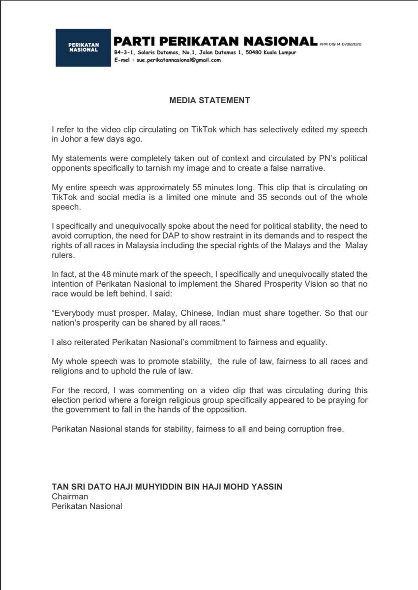 Official Twitter of Muhyiddin Yassin, 8th Prime Minister of Malaysia 🇲🇾