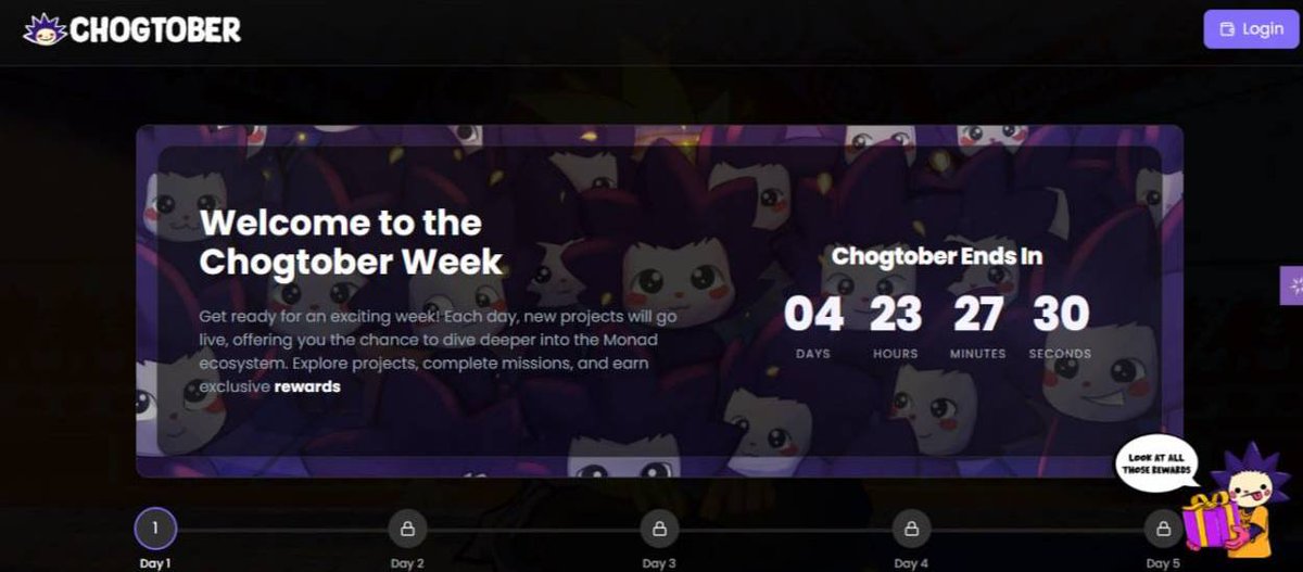 - Visit [chogtober .chog .xyz] connect your Monad wallet and socials