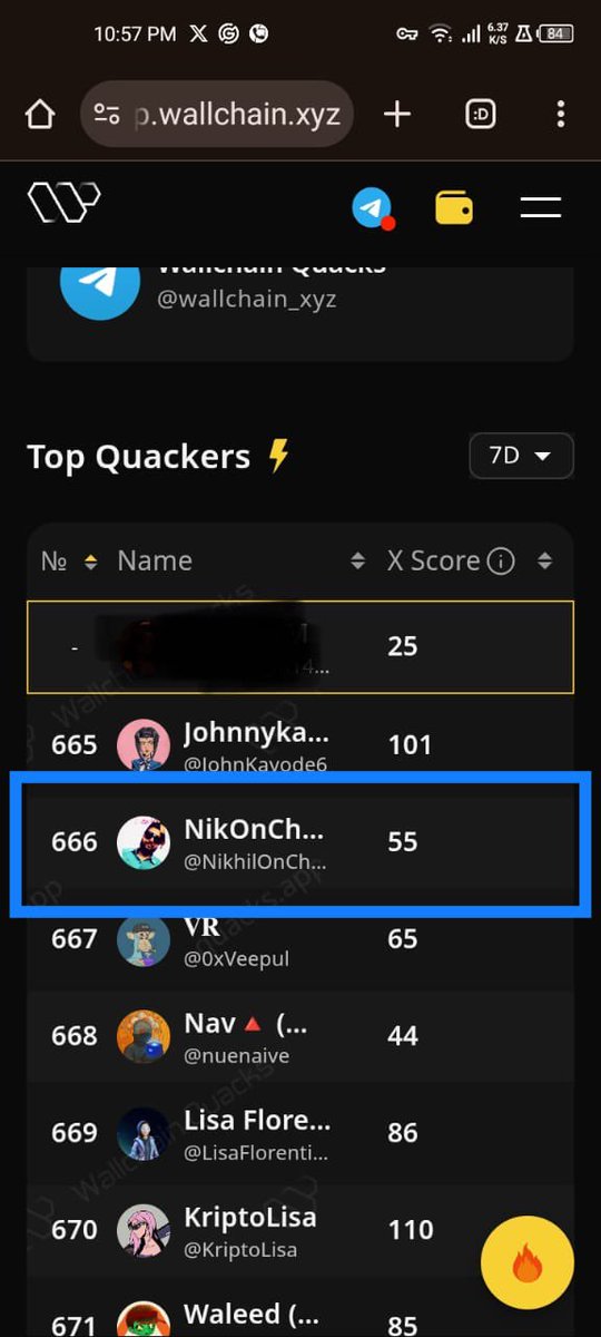 666th rank on @wallchain main leaderboard with small account of 3.5k followers and @x__score of 55!