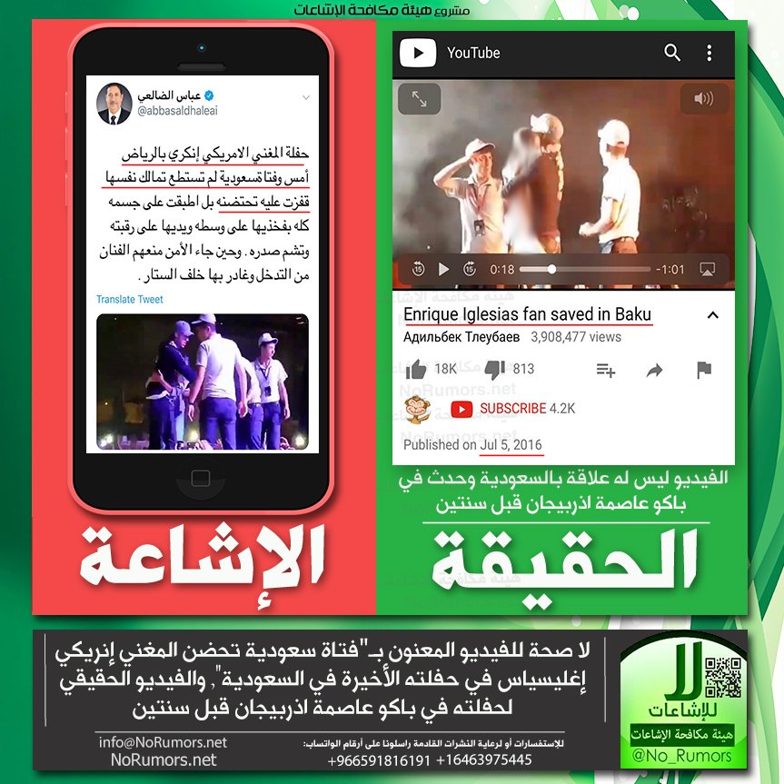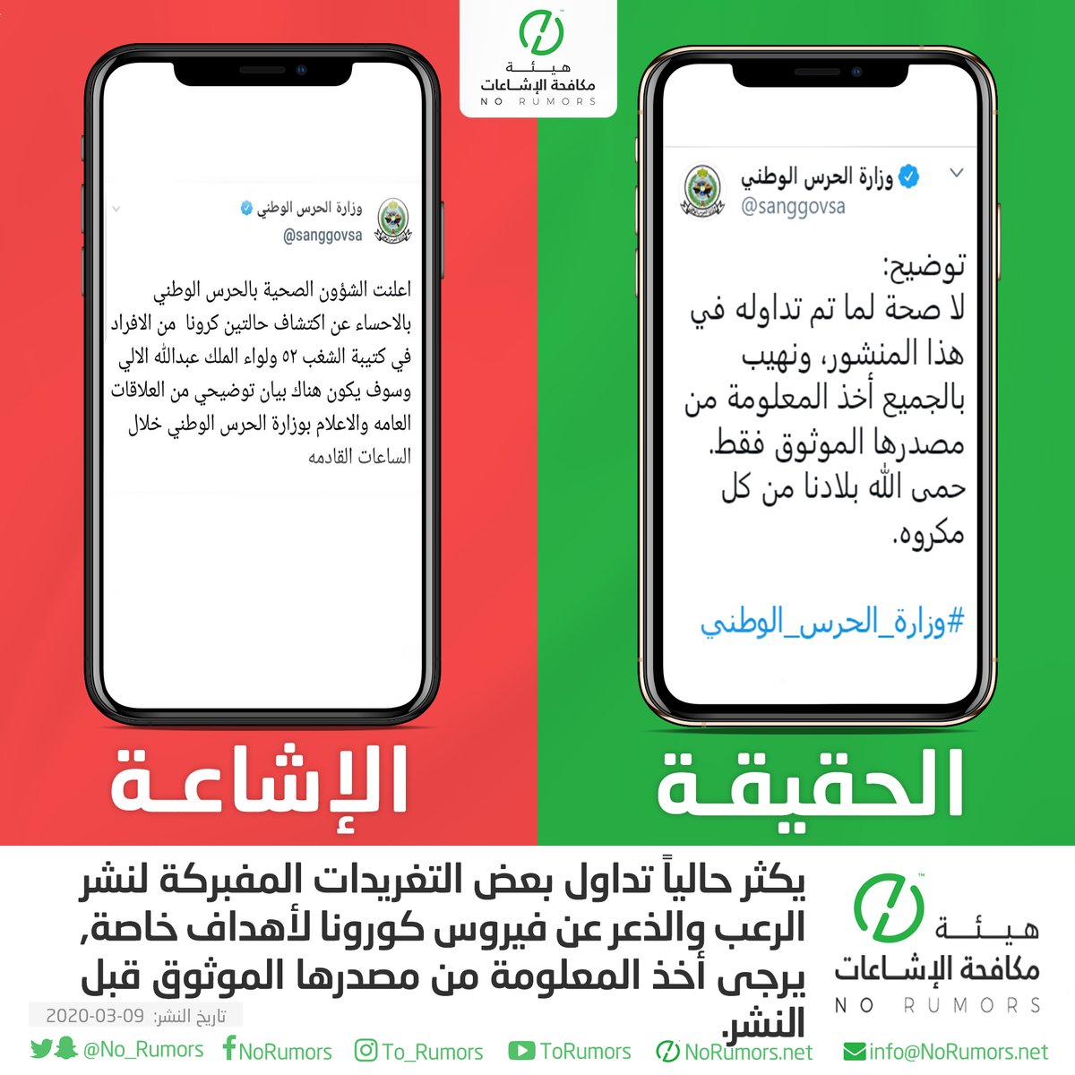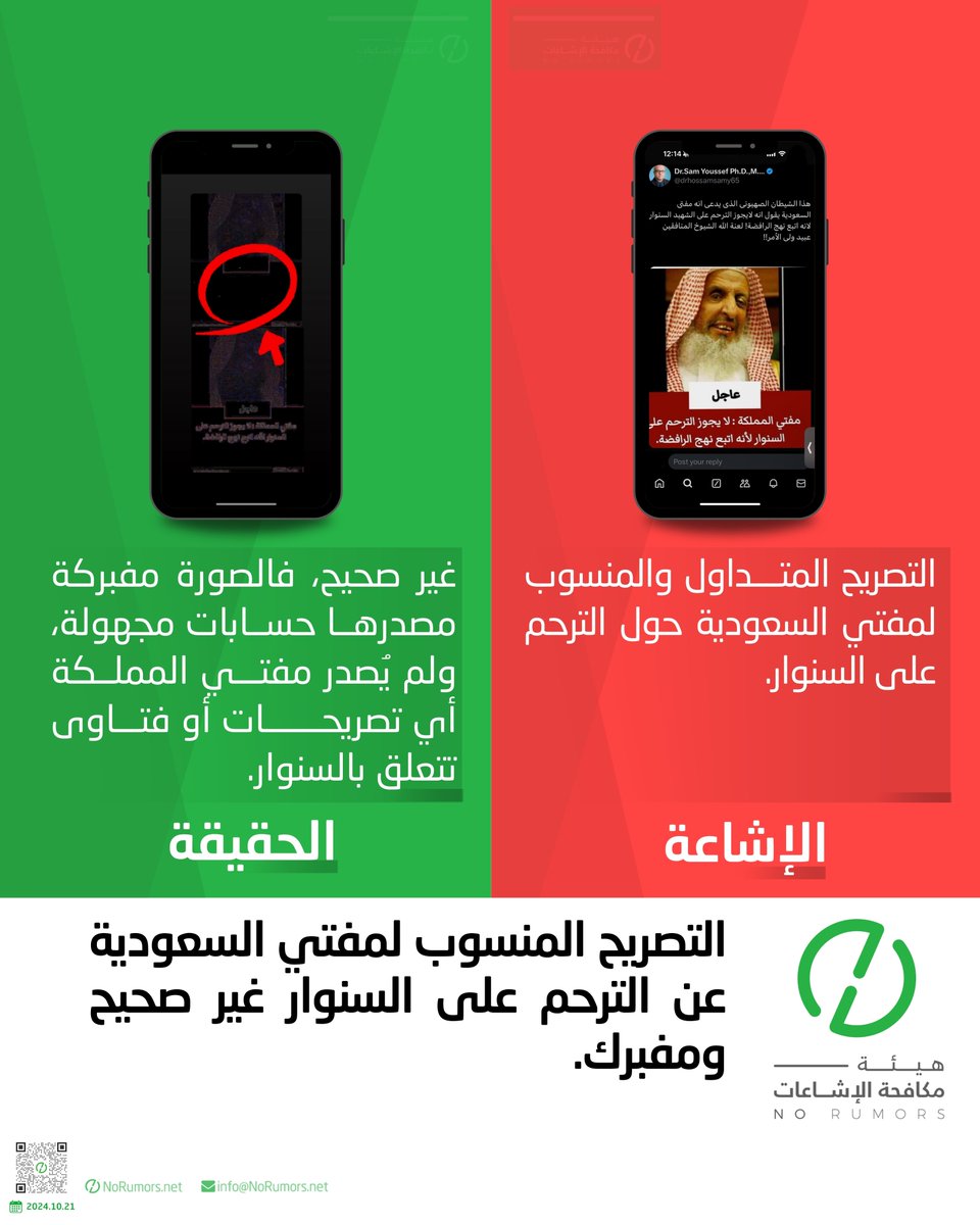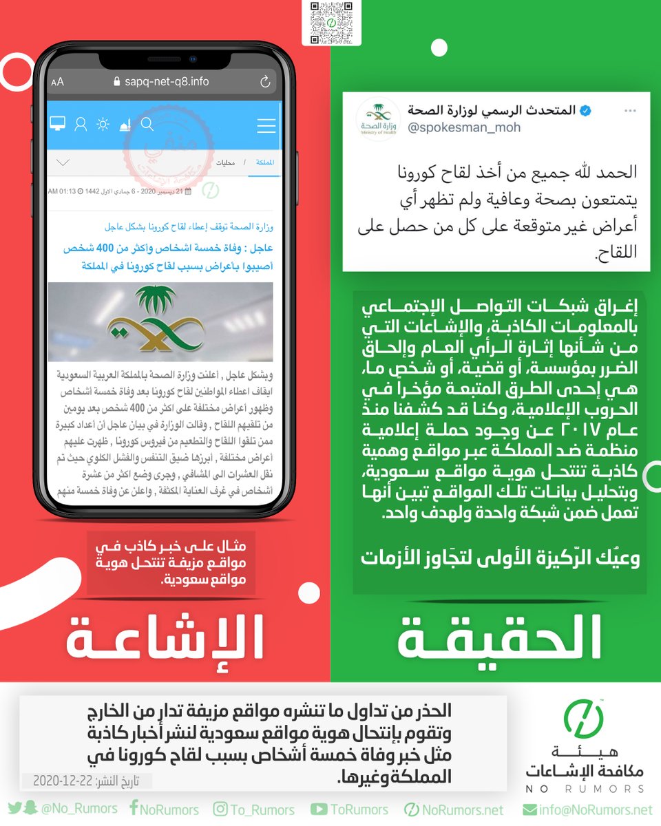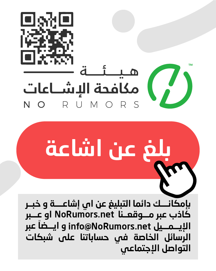 هيئة مكافحة الإشاعات منصة تعنى بتتبع الإشاعات وتفنيدها ونشر مصادرها لحماية المجتمعات من أخطارها. info@NoRumors.net