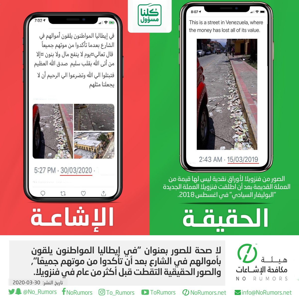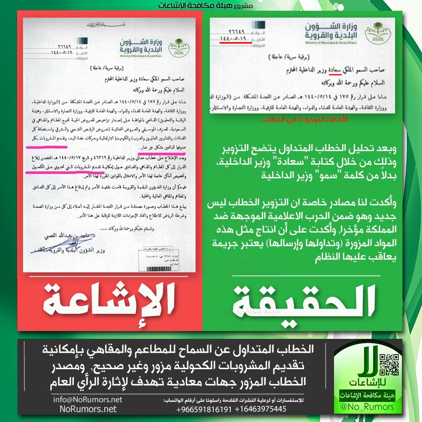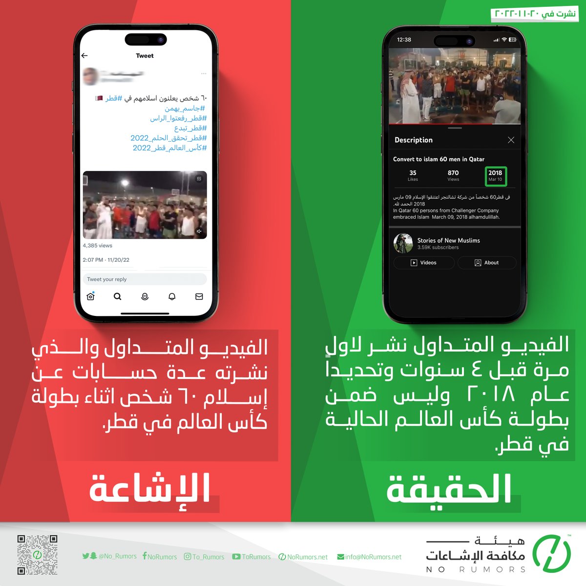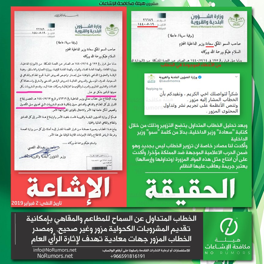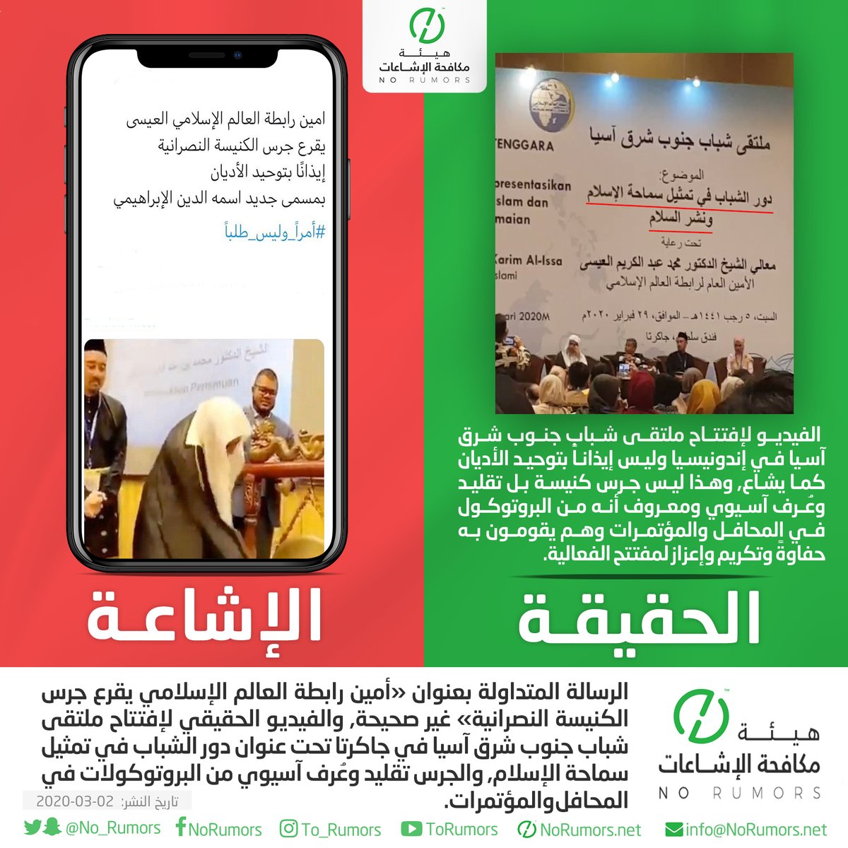هيئة مكافحة الإشاعات منصة تعنى بتتبع الإشاعات وتفنيدها ونشر مصادرها لحماية المجتمعات من أخطارها. info@NoRumors.net