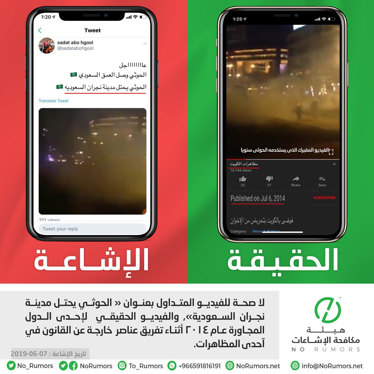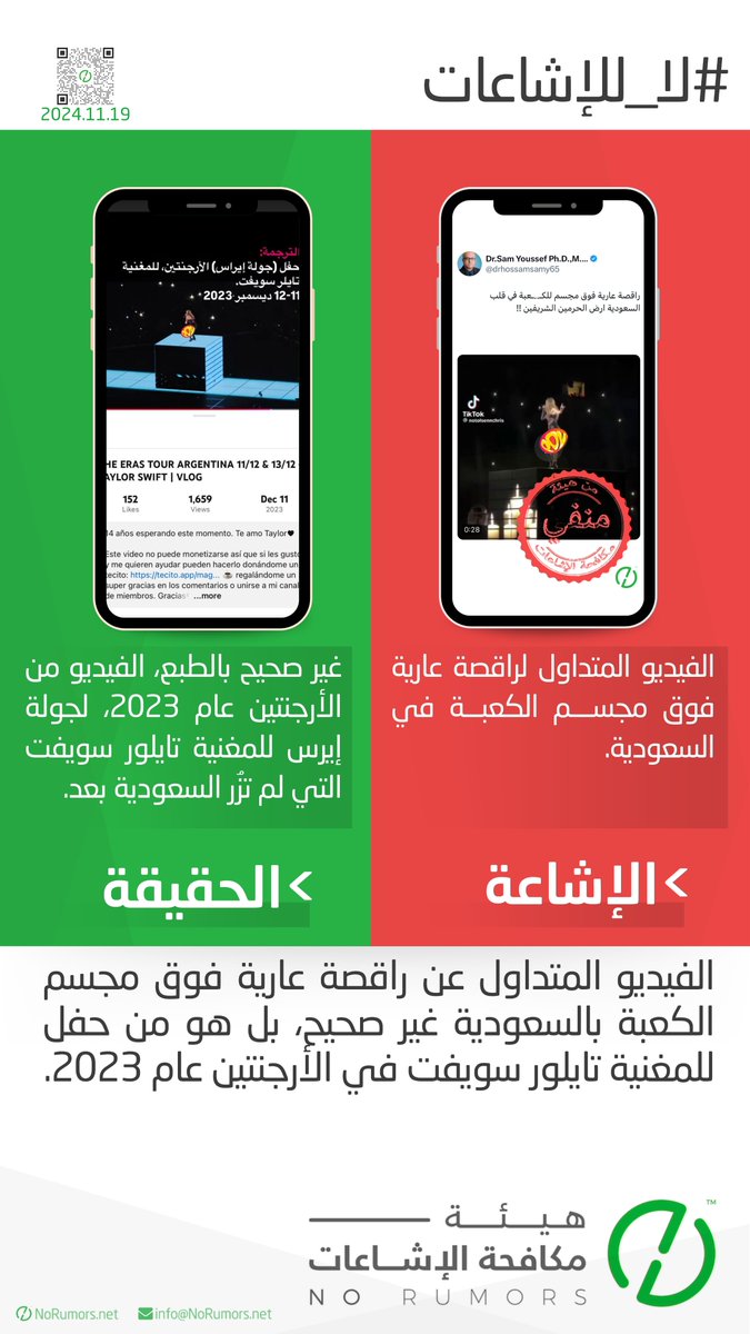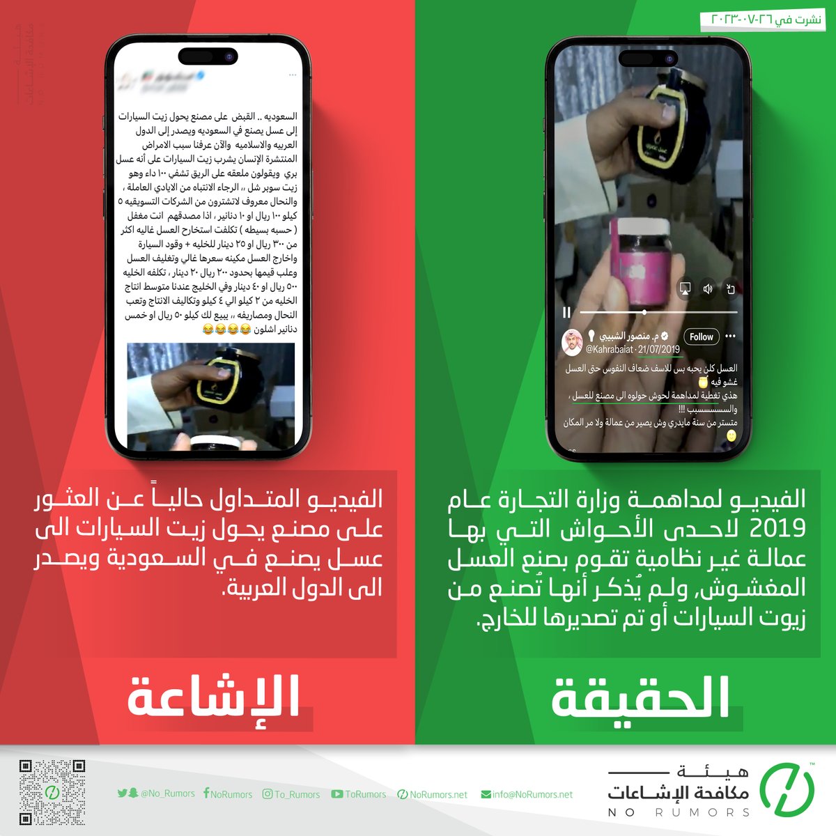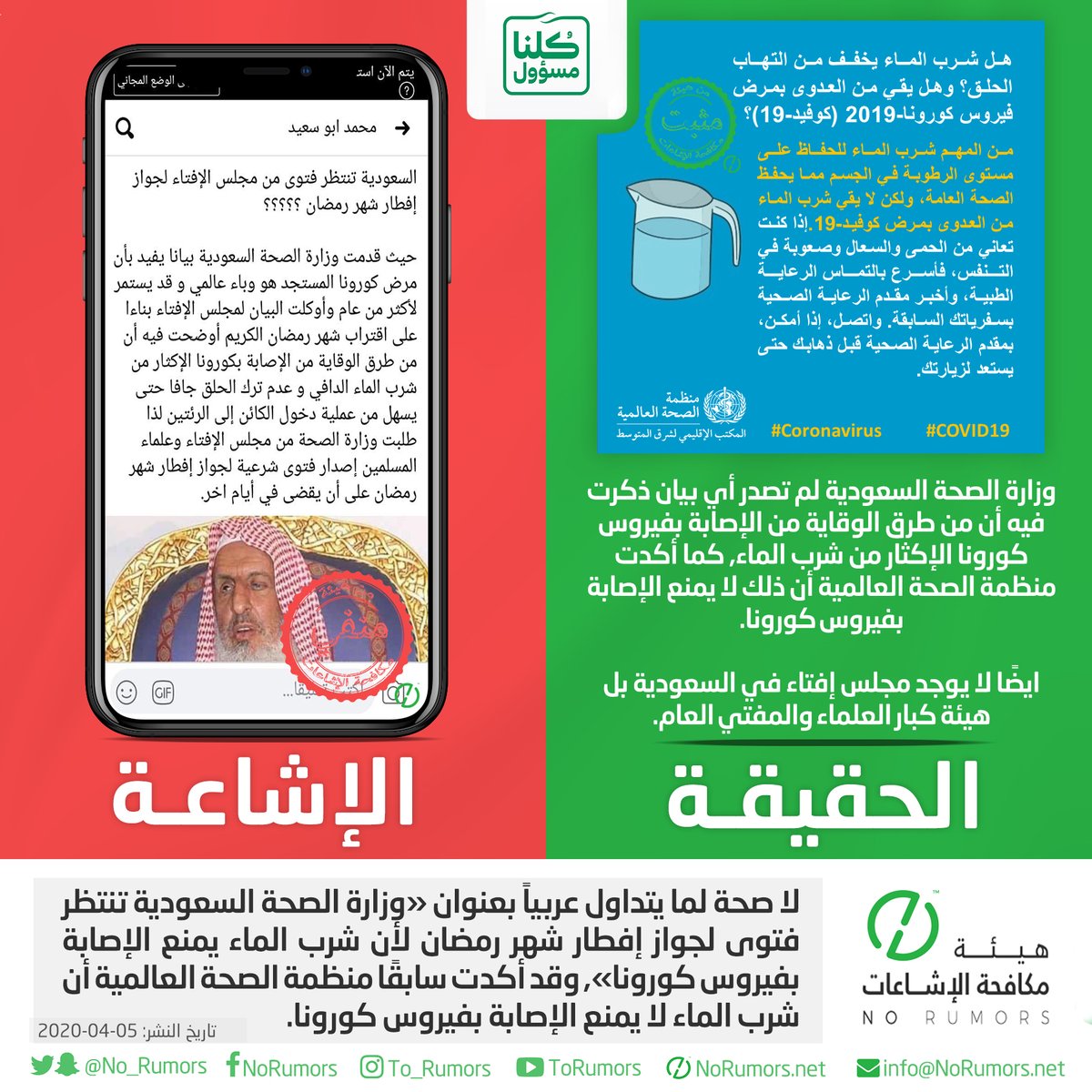 هيئة مكافحة الإشاعات منصة تعنى بتتبع الإشاعات وتفنيدها ونشر مصادرها لحماية المجتمعات من أخطارها. info@NoRumors.net