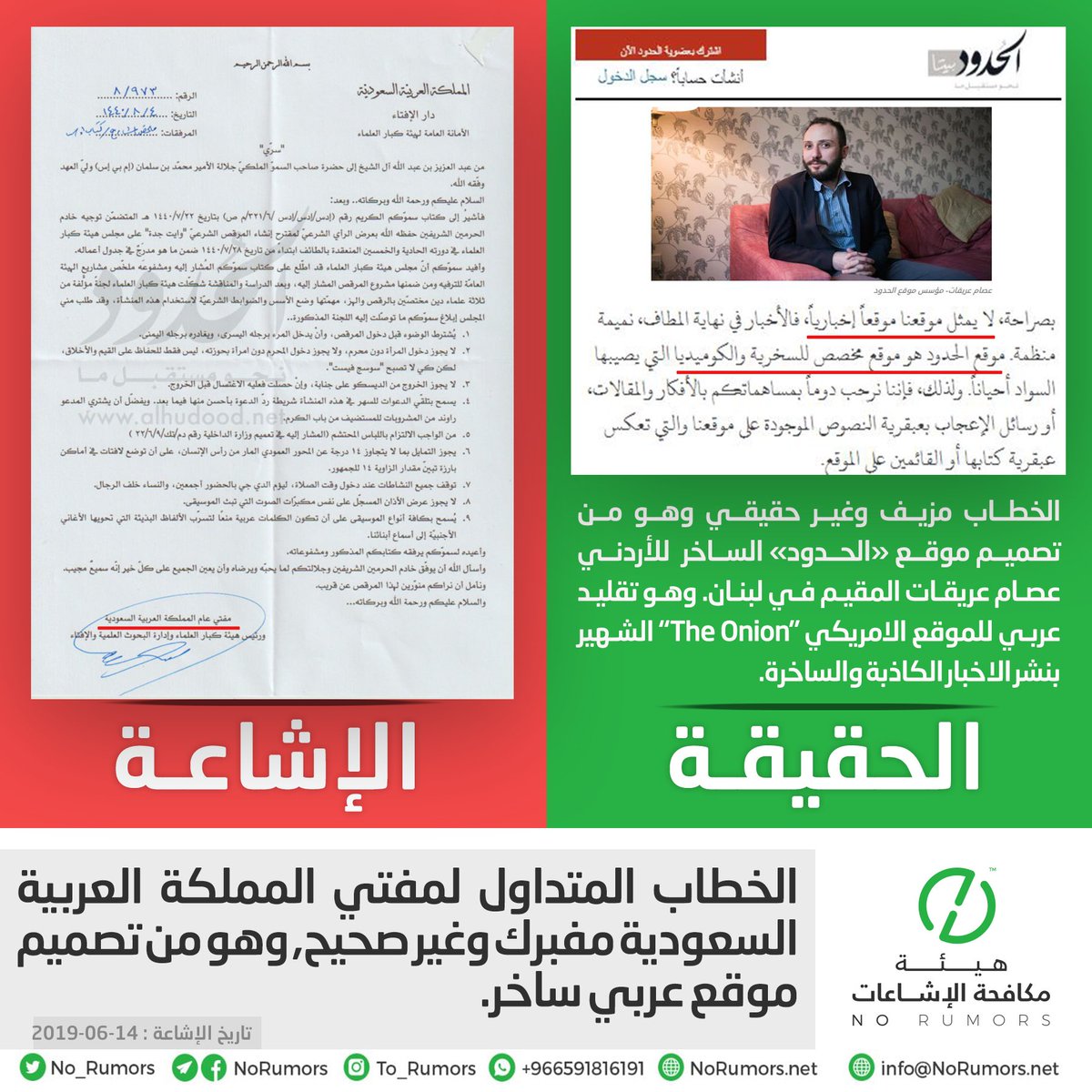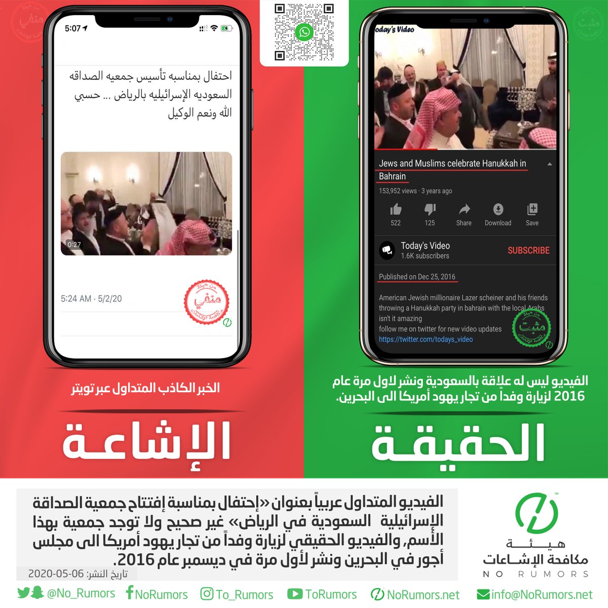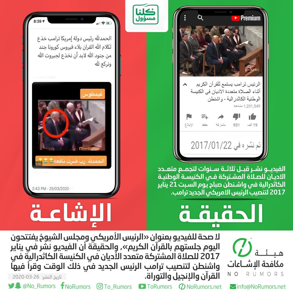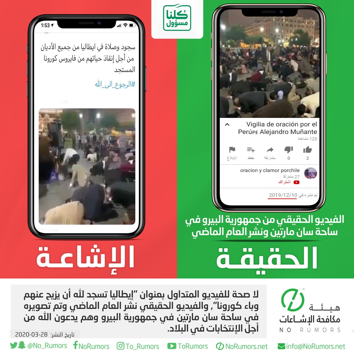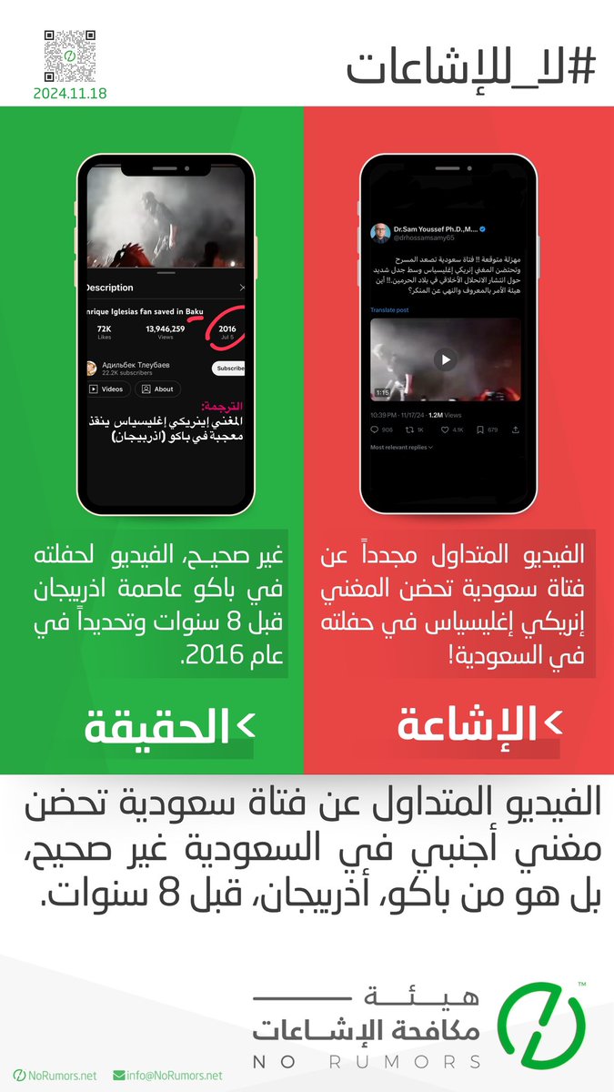 هيئة مكافحة الإشاعات منصة تعنى بتتبع الإشاعات وتفنيدها ونشر مصادرها لحماية المجتمعات من أخطارها. info@NoRumors.net
