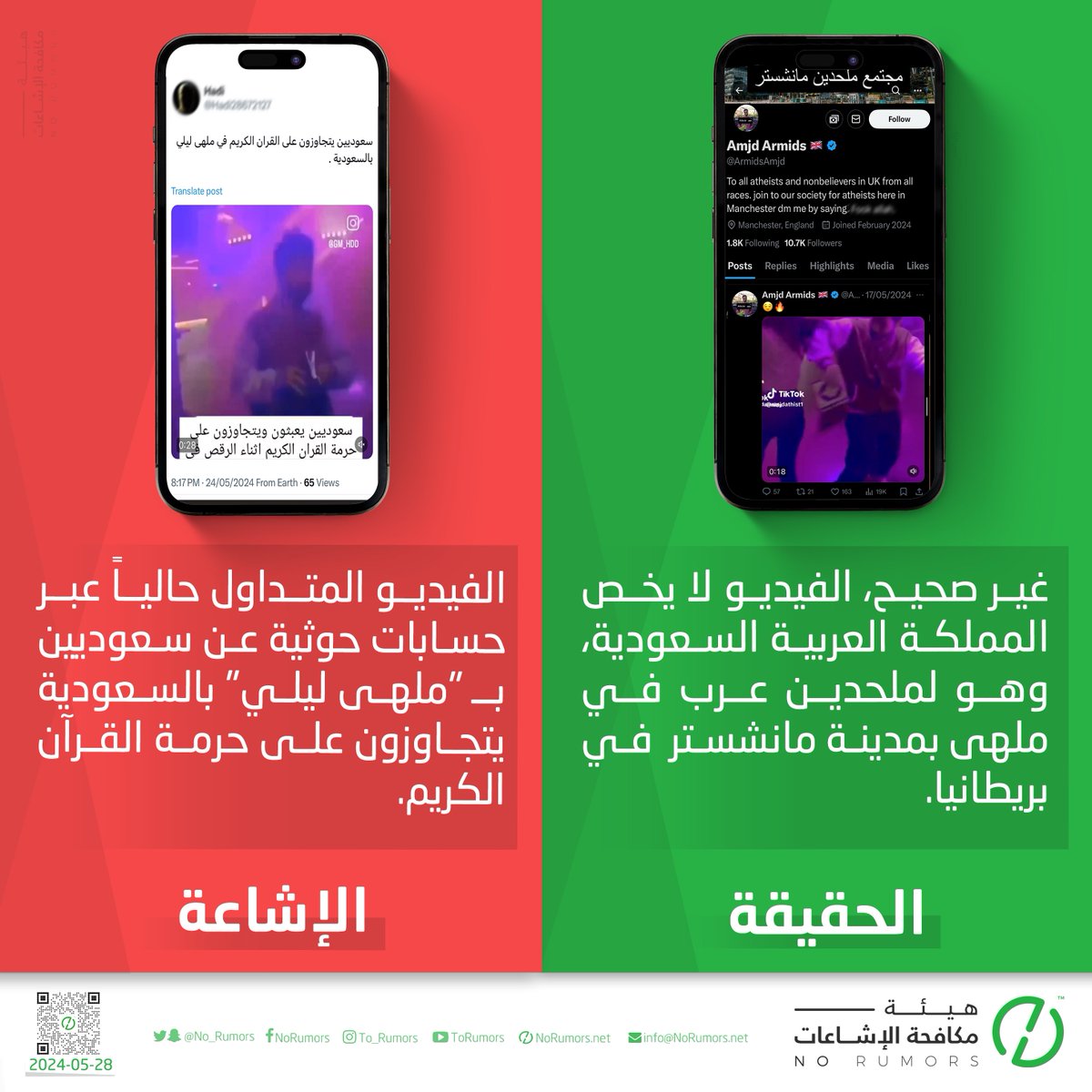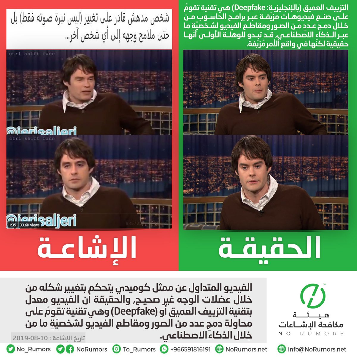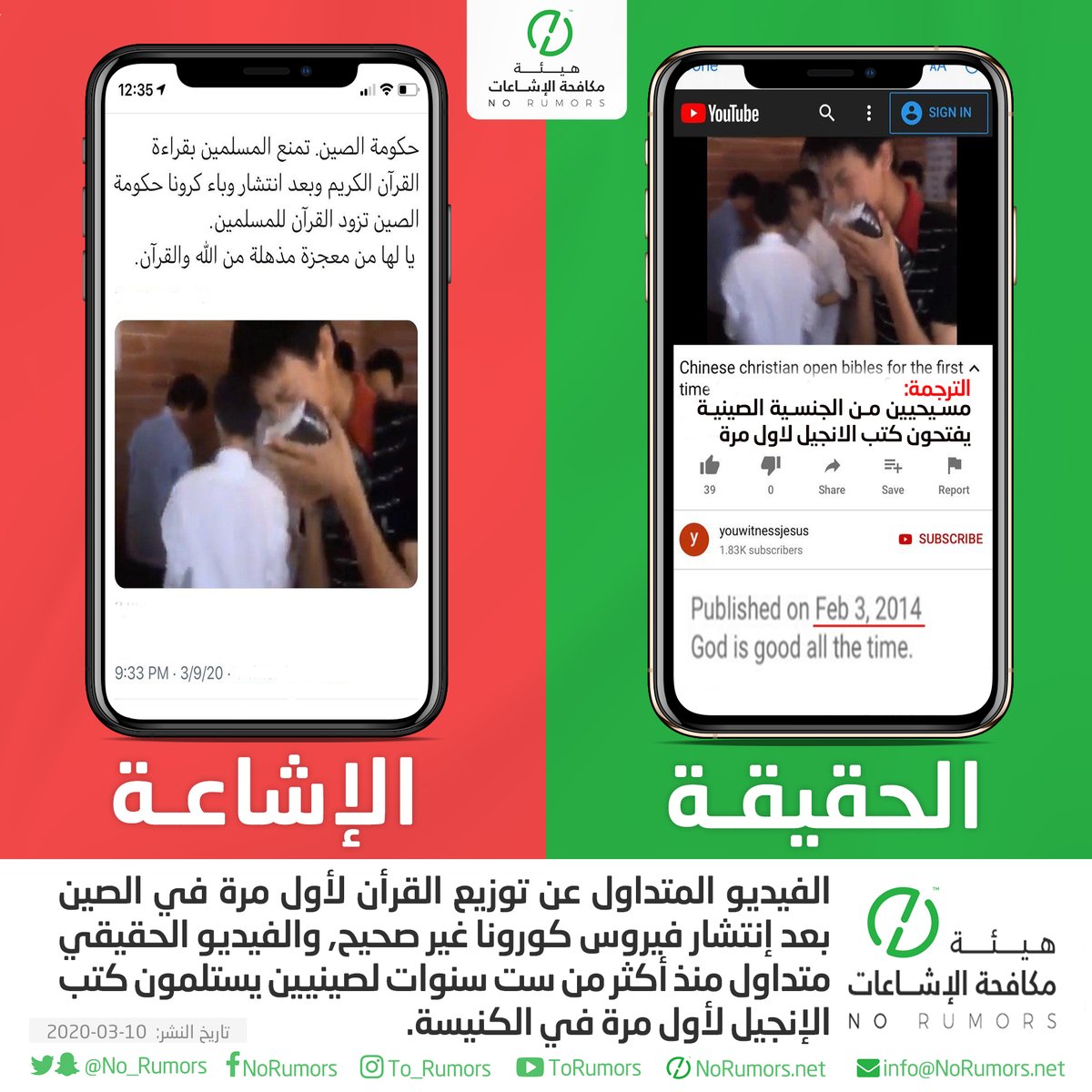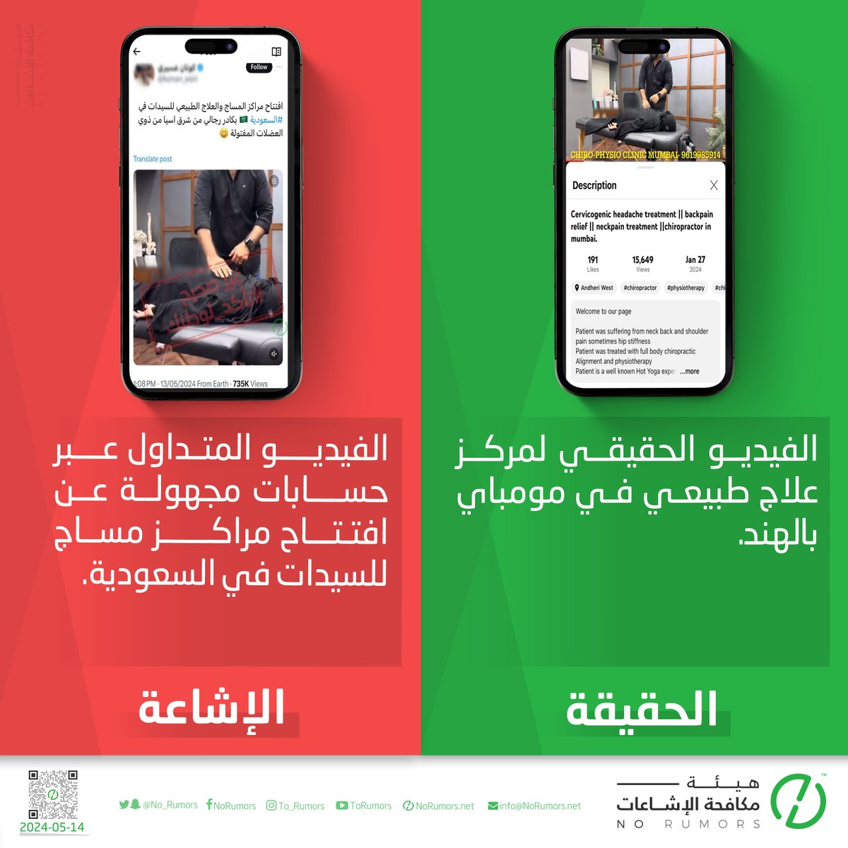 هيئة مكافحة الإشاعات منصة تعنى بتتبع الإشاعات وتفنيدها ونشر مصادرها لحماية المجتمعات من أخطارها. info@NoRumors.net