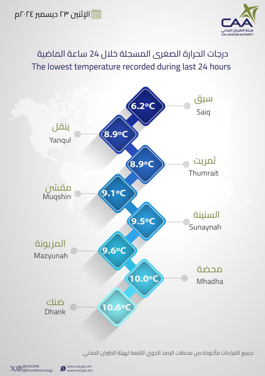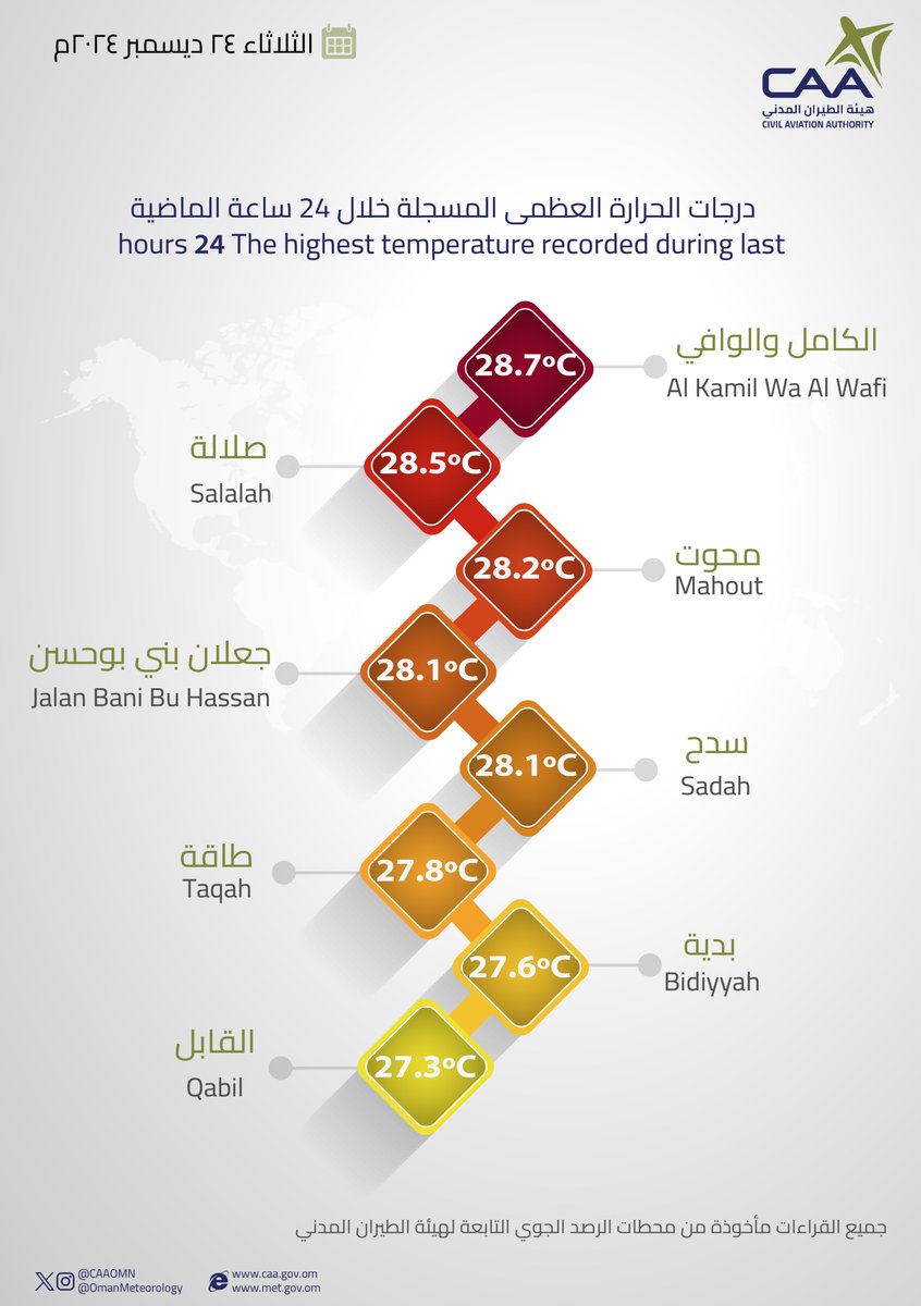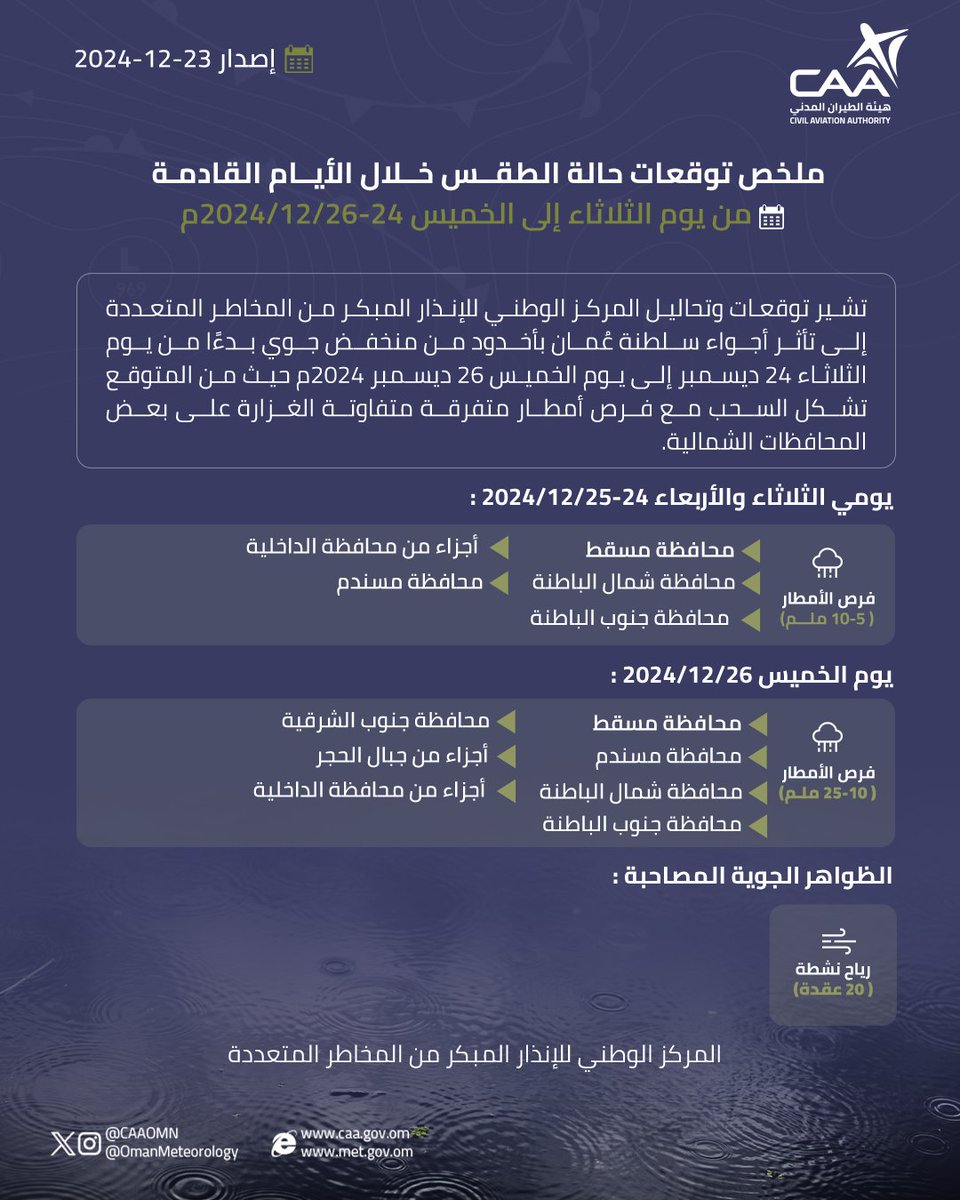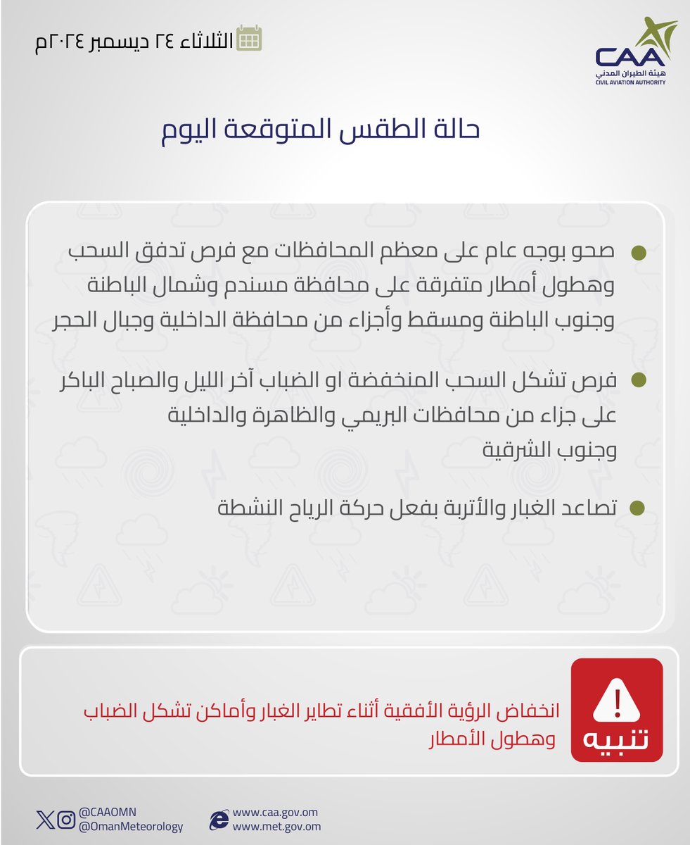 الحساب الرسمي للأرصاد الجوّية العُمانيّة - هيئة الطّيران المدني The official account for Oman Meteorology- @CAAOMN -Sultanate of Oman