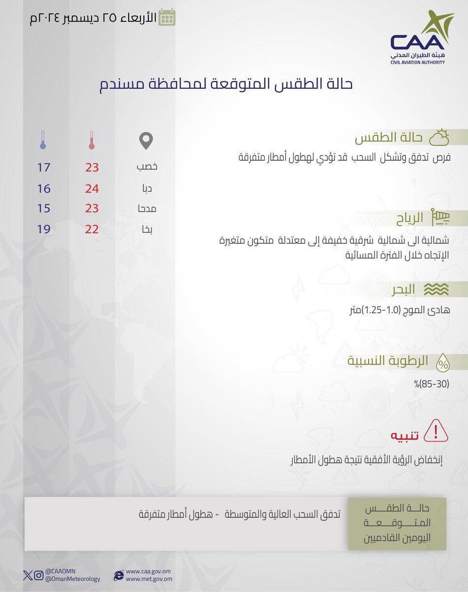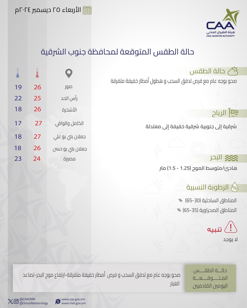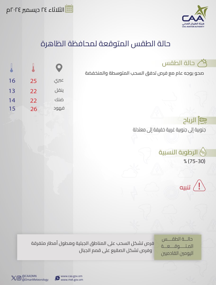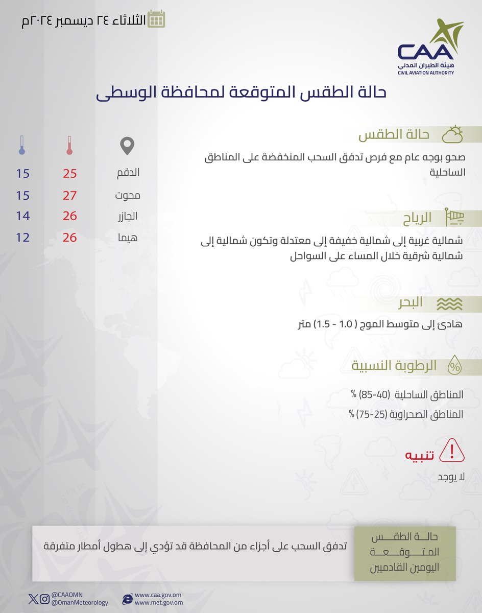 الحساب الرسمي للأرصاد الجوّية العُمانيّة - هيئة الطّيران المدني The official account for Oman Meteorology- @CAAOMN -Sultanate of Oman