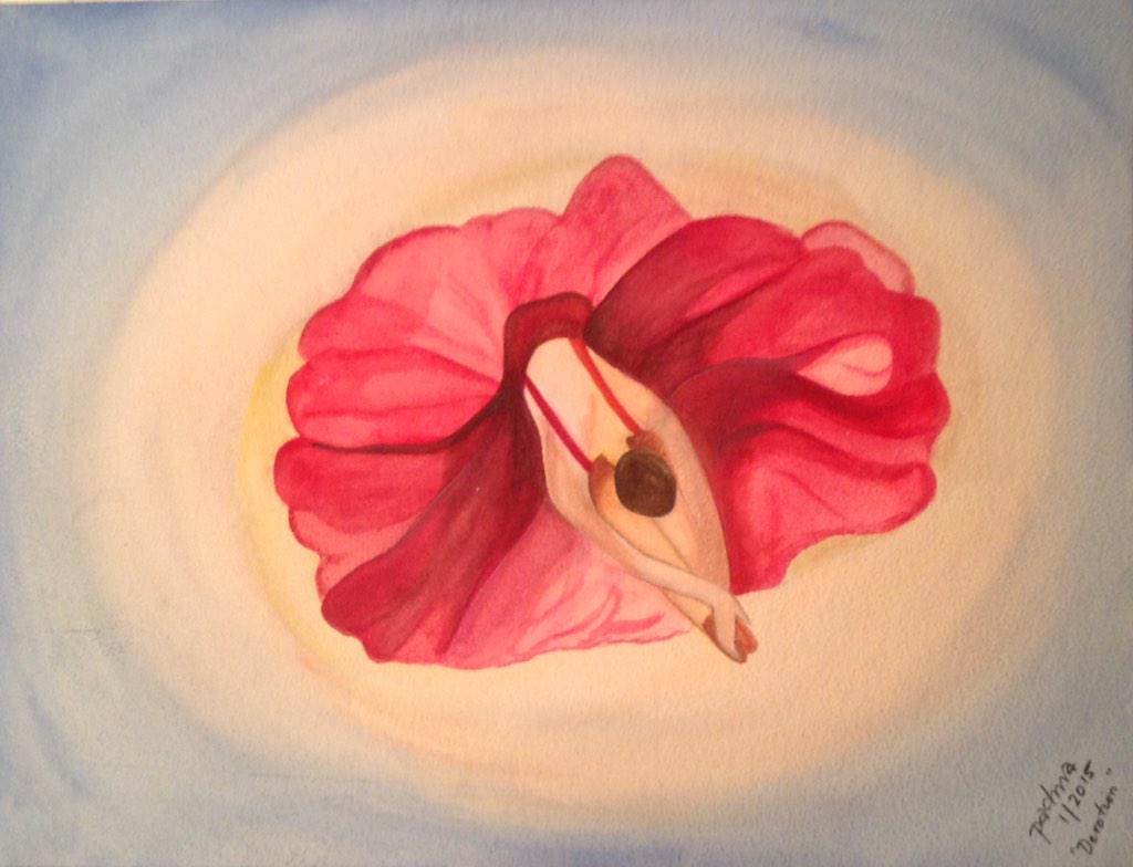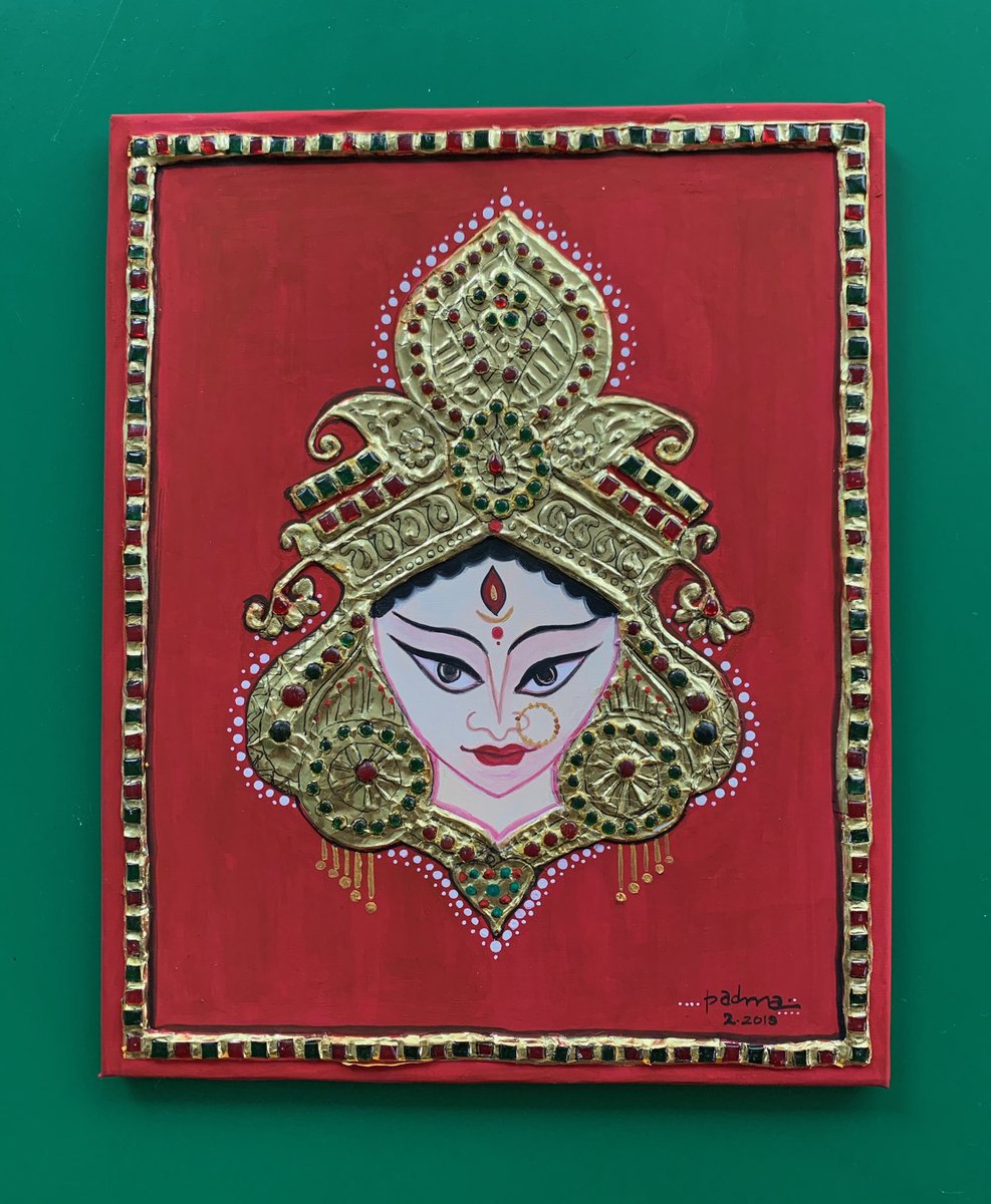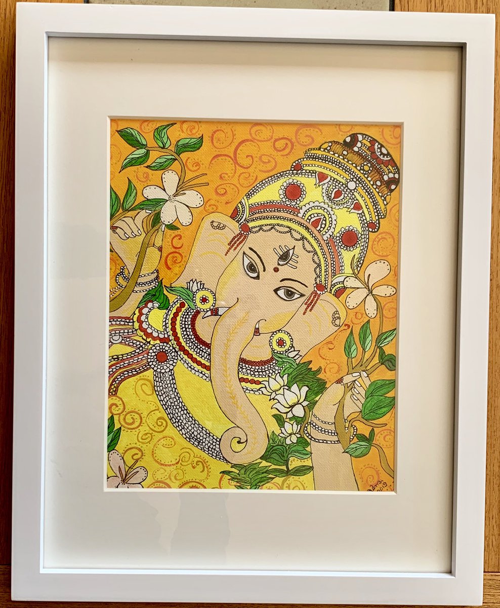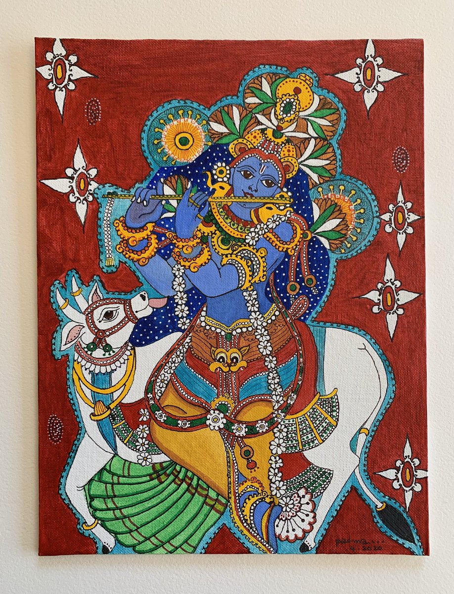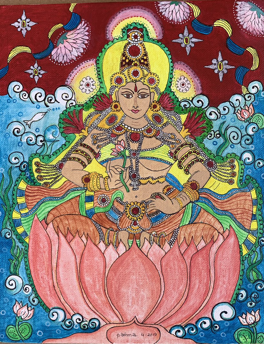 My latest painting in #keralamural style. Inspired by “Lakshmi on Lotus” from Lokanarkavu Bhagavati temple in Vadakara , Kozhikode District from the 19th century